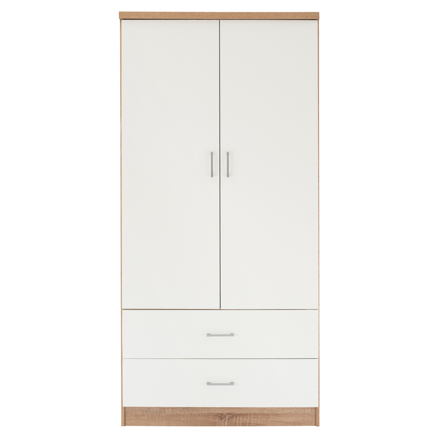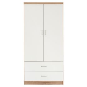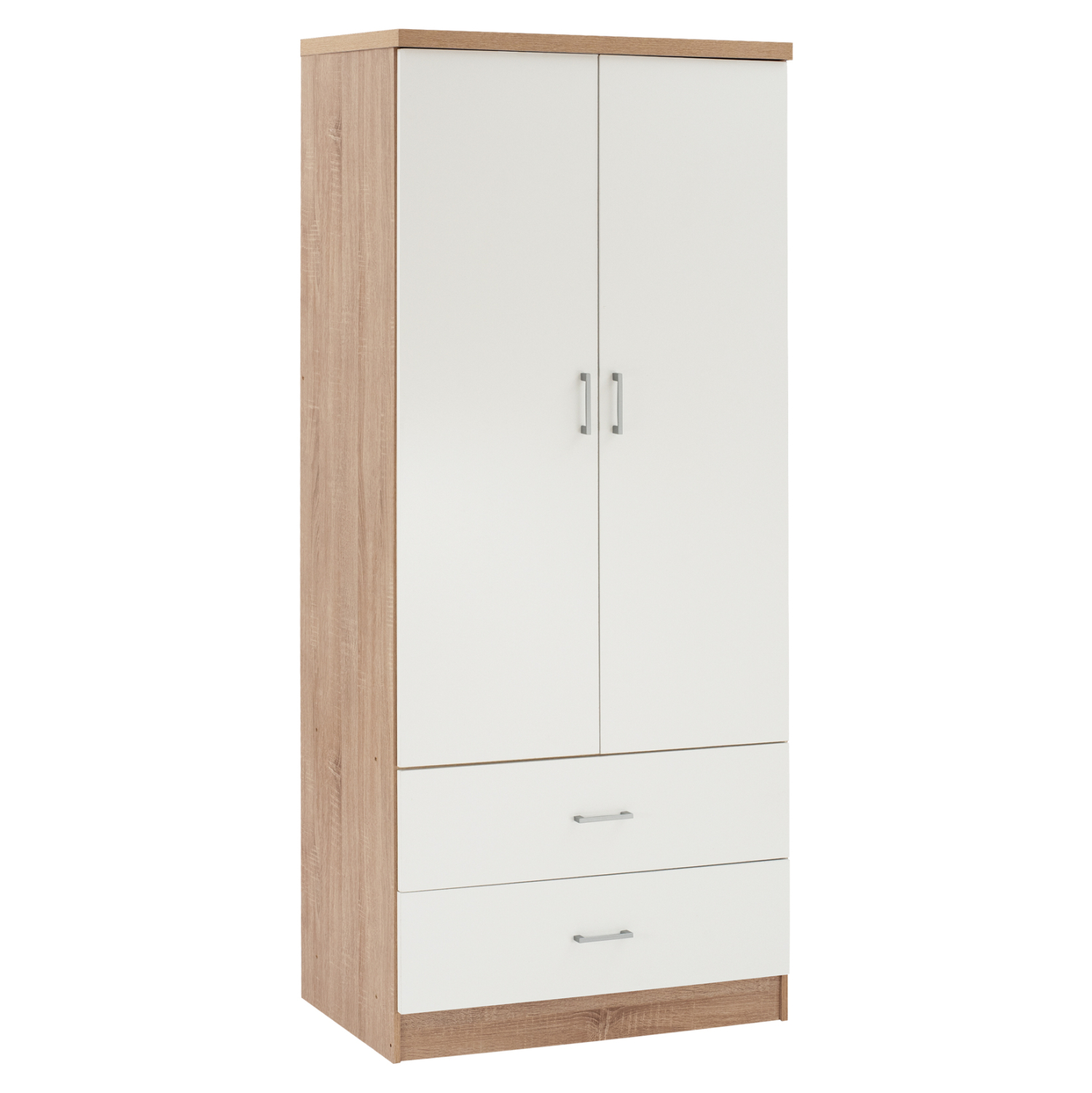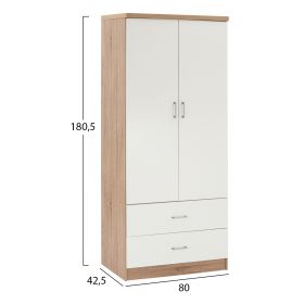 Ντουλάπα μελαμίνης δίφυλλη με δύο συρτάρια σε sonama και λευκή απόχρωση.