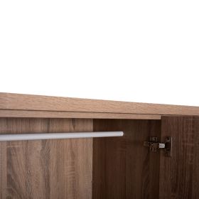 Η τρίφυλλη ντουλάπα FUENTO είναι μια πρακτικότατη, σχετικά κοντή (άρα ιδανική και για παιδικά δωμάτια), ντουλάπα που έχει φτιαχτεί με γνώμονα την όσο το δυνατόν καλύτερη εκμετάλλευση του χώρου. Έχει 3 πόρτες, αλλά με απροσδόκητα άνετους χώρους στο εσωτερικό της. Η πλευρά με την διπλή πόρτα διαθέτει ράφια και μια μεταλλική μπάρα για κρέμαση. Η πλευρά με την μονή πόρτα διαθέτει μόνο ράφια. Είναι κατασκευασμένη από μελαμίνη σε SONAMA OAK χρώμα και αισθητικά μπορεί να ταιριάξει με πολλά άλλα στυλ, χάρη και στις «καθαρές» γραμμές της.