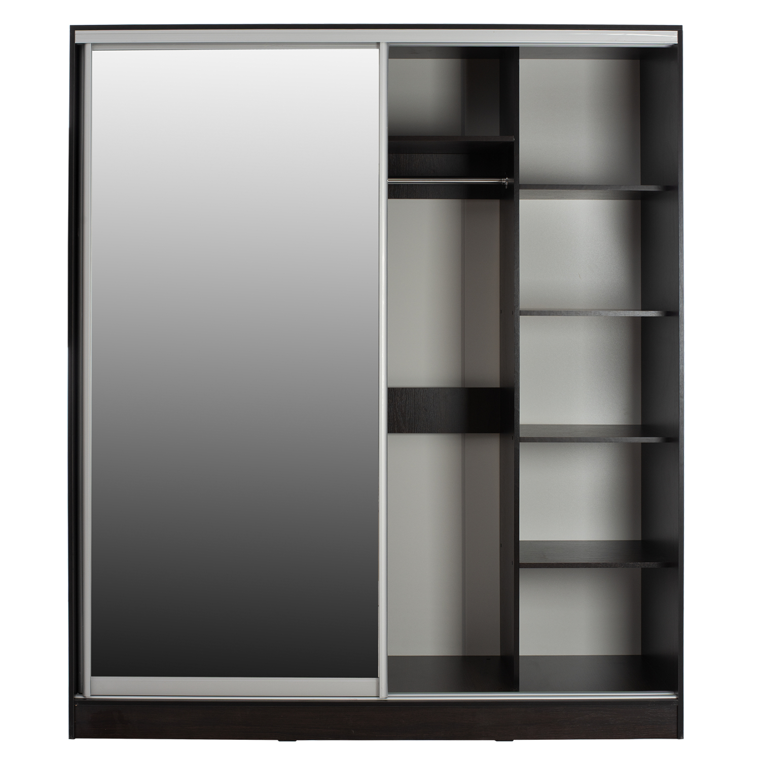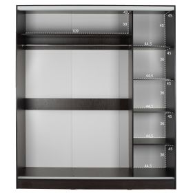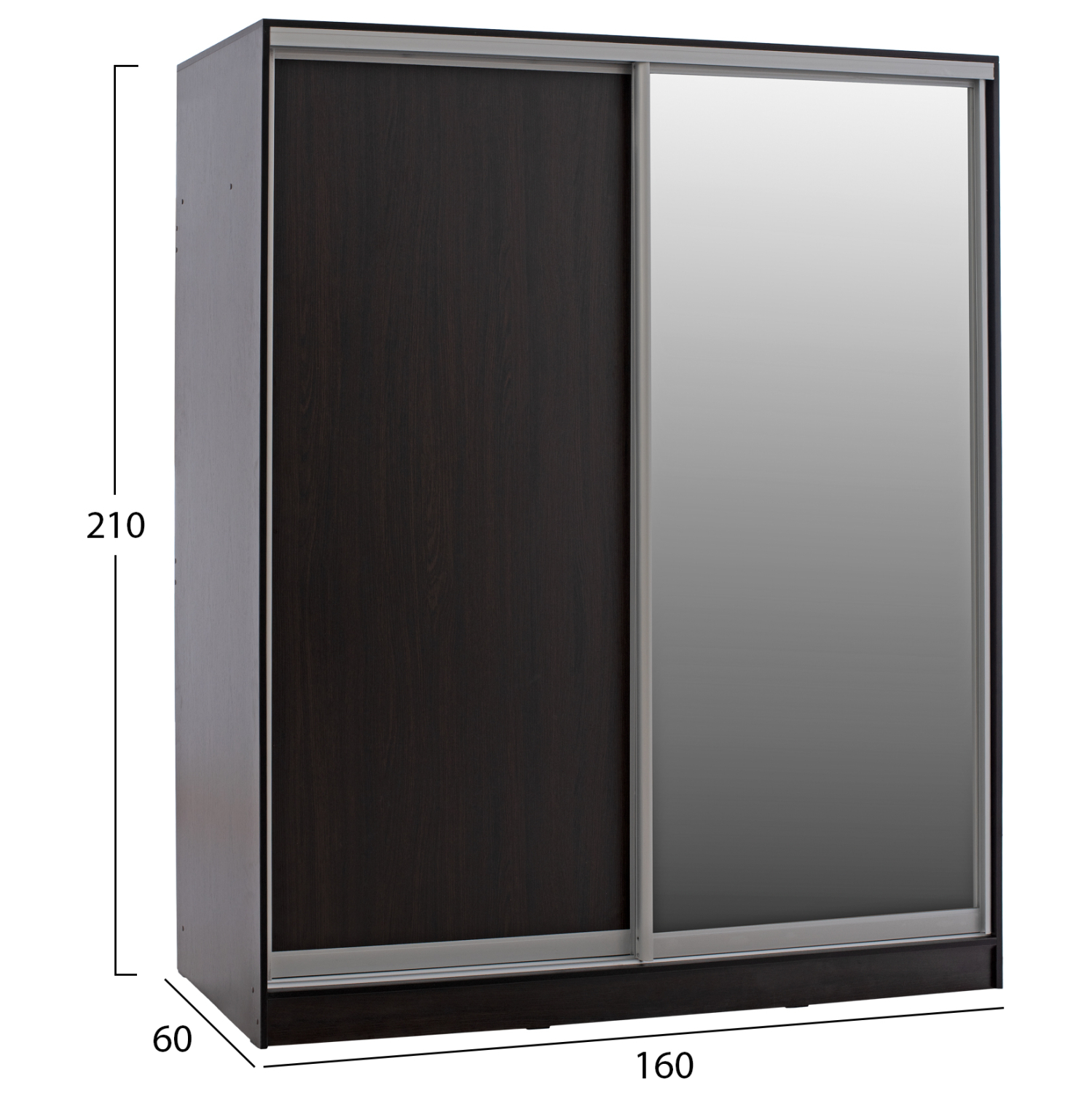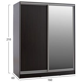 ΗΜ2434.02-Ντουλάπα---Γνωρίστε την δίφυλλη ντουλάπα ADLER. Πρόκειται για μια πρακτικότατη ντουλάπα που έχει φτιαχτεί με γνώμονα την όσο το δυνατόν καλύτερη εκμετάλλευση του χώρου. Οι πόρτες είναι συρόμενες, ενώ η μία από αυτές είναι ολόκληρη εξοπλισμένη με καθρέπτη, για να μην χρειαστείτε ξεχωριστό έπιπλο που θα καταλάμβανε επιπλέον χώρο. Το εσωτερικό της ντουλάπας χωρίζεται σε 2 μέρη. Η μία πλευρά διαθέτει παταράκι και κάτω από το παταράκι μια ράγα για κρεμάστρες. Η άλλη πλευρά έχει ράφια. Η ντουλάπα αυτή έχει χρώμα WENGE και θα ταιριάξει σε κάθε σπίτι.