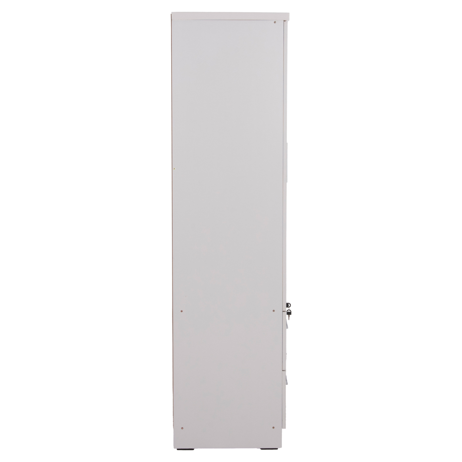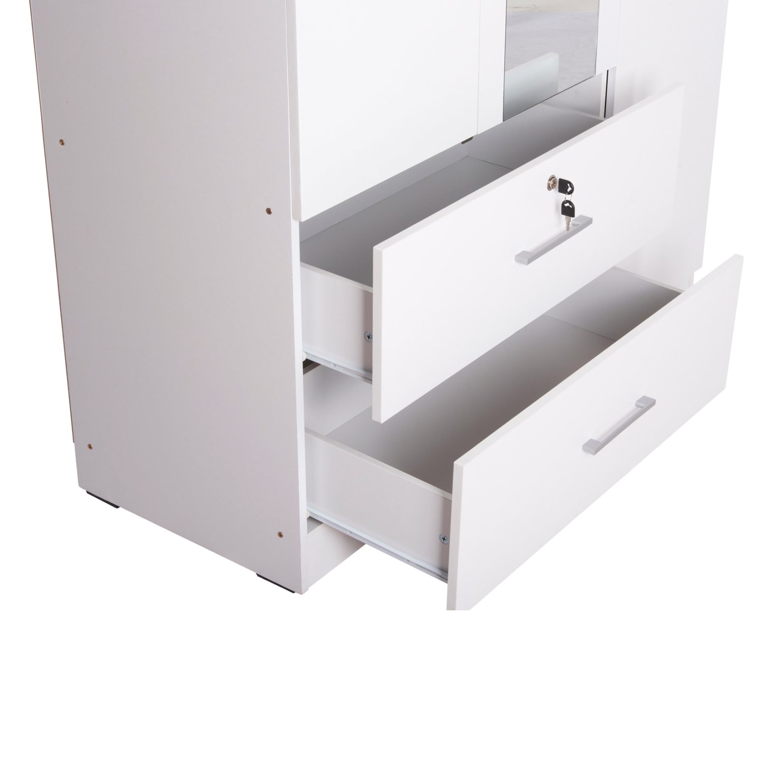 Η τρίφυλλη ντουλάπα JARRY είναι μια πρακτικότατη ντουλάπα που έχει φτιαχτεί με γνώμονα την όσο το δυνατόν καλύτερη εκμετάλλευση του χώρου. Έχει 3 πόρτες, αλλά με απροσδόκητα άνετους χώρους στο εσωτερικό της. Η πλευρά με την διπλή πόρτα διαθέτει καθρέπτη στην μία πόρτα και μια μεταλλική μπάρα για κρέμαση ρούχων στο εσωτερικό, ενώ στο κάτω μέρος υπάρχουν 2 συρτάρια, ένα εκ των οποίων διαθέτει κλειδαριά. Η πλευρά με την μονή πόρτα διαθέτει 4 ράφια (5 αποθηκευτικοί χώροι). Είναι κατασκευασμένη από μελαμίνη σε ΛΕΥΚΟ χρώμα και αισθητικά μπορεί να ταιριάξει με πολλά άλλα στυλ, χάρη και στις «καθαρές» γραμμές της.