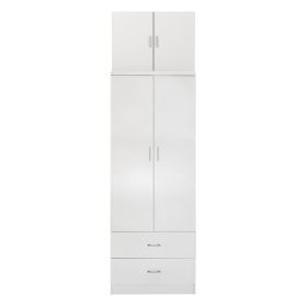 Η 2-φυλλη ντουλάπα REINA με πατάρι διαθέτει στο εσωτερικό της μόνο μια INOX μπάρα για κρέμαση ρούχων. Κάτω ακριβώς από τον χώρο της γκαρνταρόμπας υπάρχουν 2 ευρύχωρα συρτάρια, ενώ το πατάρι αποτελείται από έναν ενιαίο αποθηκευτικό χώρο. Οι πόρτες αλλά και τα συρτάρια ανοίγουν με καλαίσθητα ασημί χερούλια. Είναι κατασκευασμένη από μελαμίνη σε ΛΕΥΚΟ χρώμα και αισθητικά μπορεί να ταιριάξει με πολλά άλλα στυλ, χάρη και στις «καθαρές» γραμμές της.