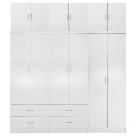 Η μεγάλη ντουλάπα-γκαρνταρόμπα REINA (3 δίφυλλες) με πατάρια διαθέτει 6 πόρτες (6-φυλλη) και είναι χωρισμένη σε δύο μέρη. Η μία πλευρά διαθέτει μπάρες για κρέμαση ρούχων και 4 συρτάρια στο κάτω μέρος. Η άλλη πλευρά διαθέτει επίσης μπάρα για κρέμαση ρούχων και ένα ράφι πάνω από την μπάρα. Τα πατάρια διαθέτουν ενιαίους αποθηκευτικούς χώρους χωρίς ράφια. Οι πόρτες αλλά και τα συρτάρια ανοίγουν με καλαίσθητα ασημί χερούλια. Είναι κατασκευασμένη από μελαμίνη σε ΛΕΥΚΟ χρώμα και αισθητικά μπορεί να ταιριάξει με πολλά άλλα στυλ, χάρη και στις «καθαρές» γραμμές της.