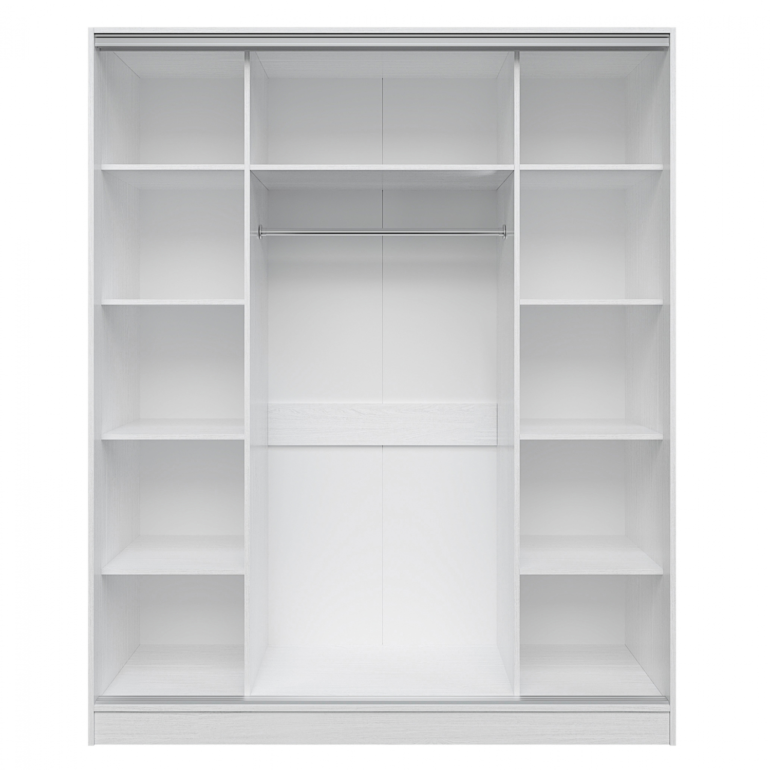 Η ντουλάπα υπνοδωματίου διαθέτει λιτό σχέδιο και το εσωτερικό της περιλαμβάνει στις δύο άκρες, δεξιά και αριστερά, ράφια,που δημιουργούν 5 ευρύχωρα ράφια για αποθήκευση.