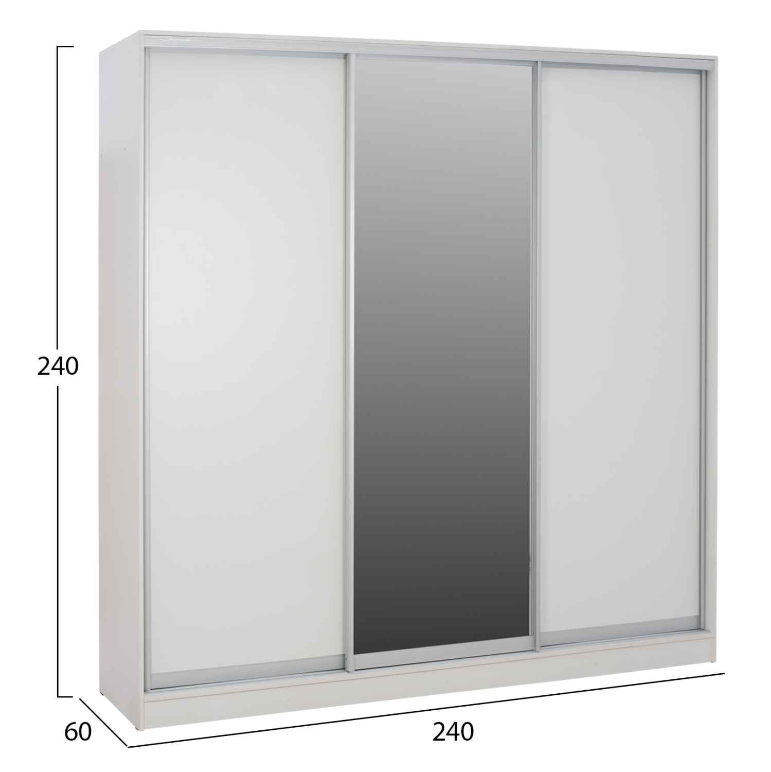 Ντουλάπα τρίφυλλη, σε λευκή απόχρωση, 240x60x240 εκ.