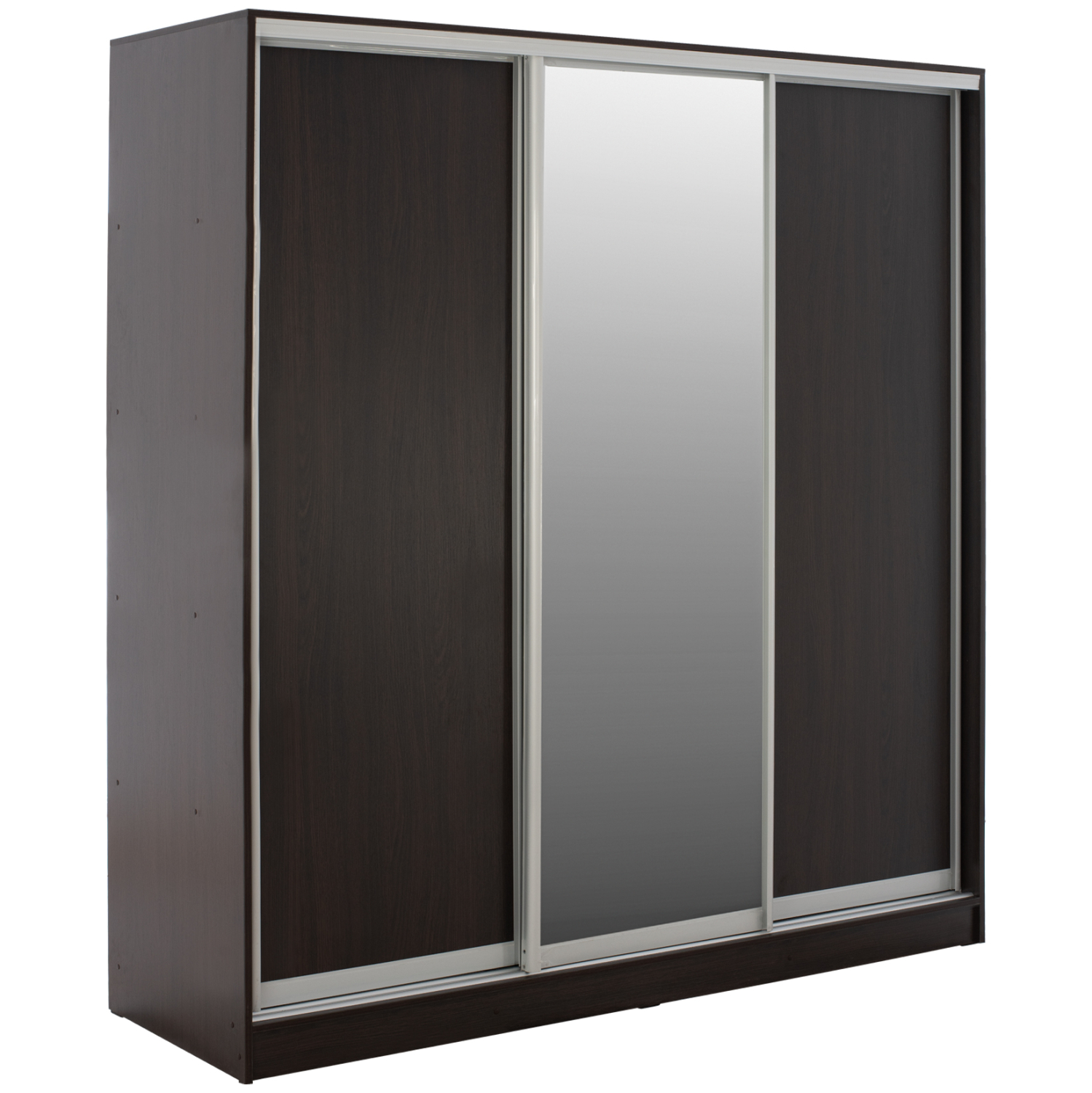 ΗΜ2462.02-Ντουλάπα---Γνωρίστε την 3-φυλλη ντουλάπα ADLER. Πρόκειται για μια πρακτικότατη ντουλάπα που έχει φτιαχτεί με γνώμονα την όσο το δυνατόν καλύτερη εκμετάλλευση του χώρου. Οι πόρτες είναι συρόμενες, ενώ η μία από αυτές είναι ολόκληρη εξοπλισμένη με καθρέπτη, για να μην χρειαστείτε ξεχωριστό έπιπλο που θα καταλάμβανε επιπλέον χώρο. Το εσωτερικό της ντουλάπας χωρίζεται σε 3 μέρη. Η δεξιά και η αριστερή πλευρά είναι πανομοιότυπες και αποτελούνται από ράφια με μεγάλο βάθος 60 εκ. Το μεσαίο τμήμα της ντουλάπας αποτελείται από 2 ράφια μεγάλα στο επάνω μέρος σαν παταράκια και ακριβώς από κάτω τους υπάρχει μια μεταλλική δοκός για κρεμάστρες. Η ντουλάπα αυτή έχει χρώμα WENGE και θα ταιριάξει σε κάθε σπίτι.