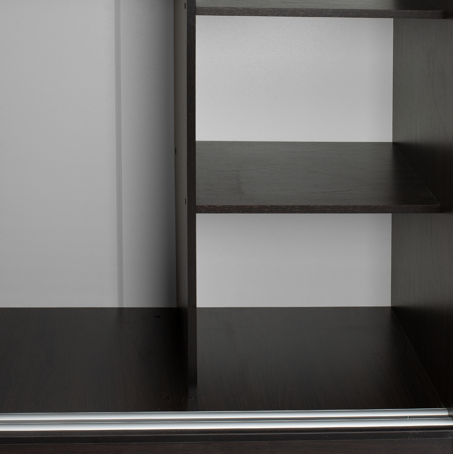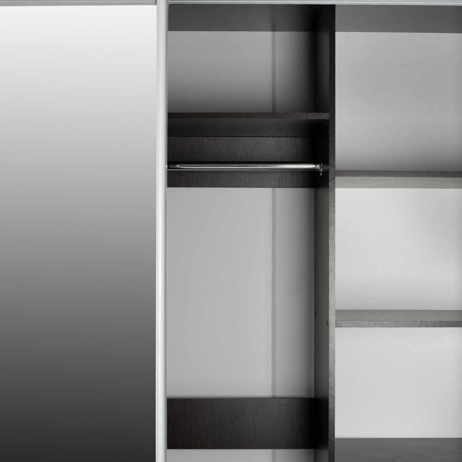 Η ντουλάπα υπνοδωματίου διαθέτει λιτό σχέδιο και το εσωτερικό της περιλαμβάνει στην αριστερή πλευρά στο πάνω ράφι, ένα μεγάλο βαθύ ράφι, πλήρως κατάλληλο για αποθήκευση κλινοσκεπασμάτων.