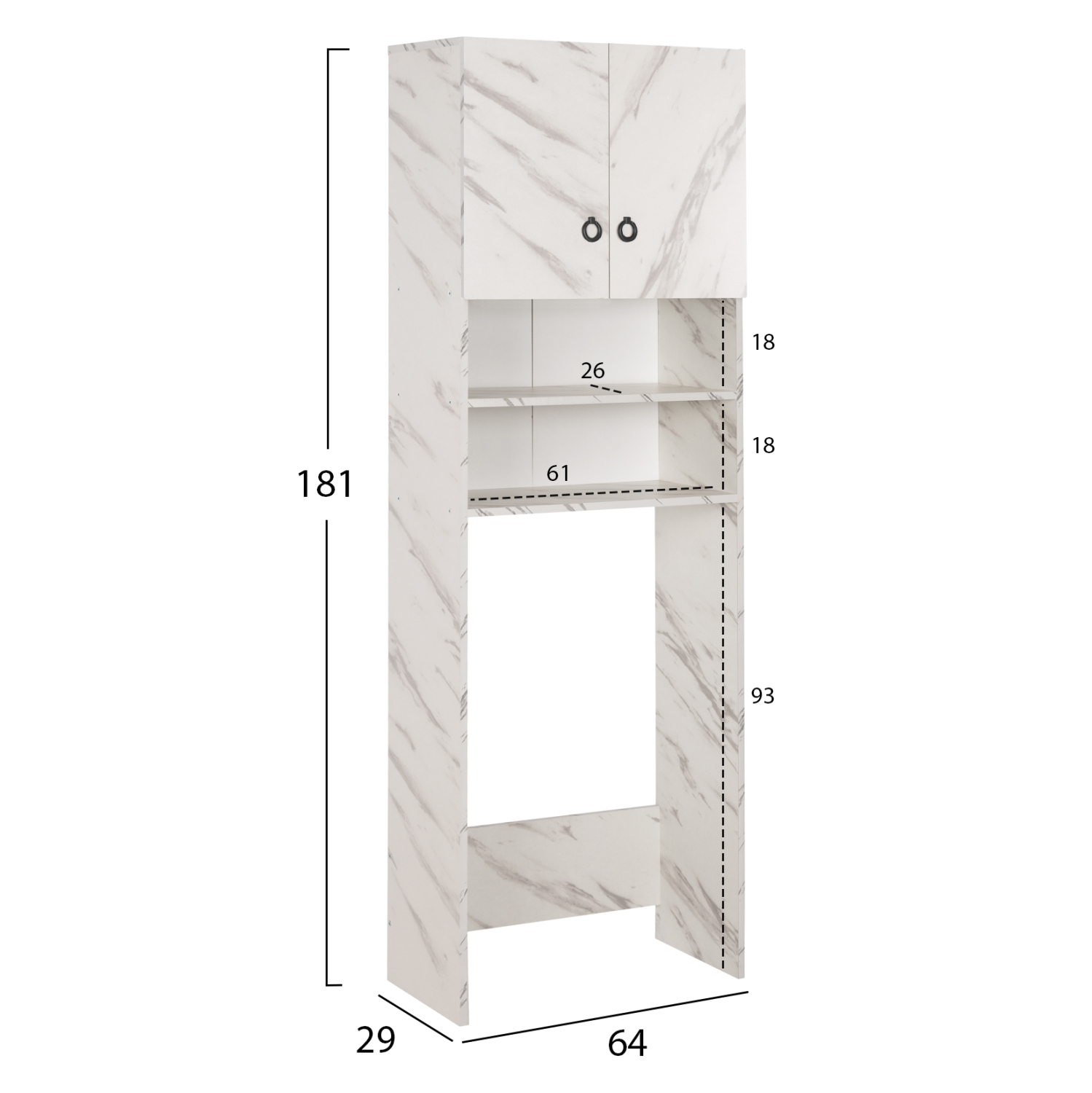 Διαστάσεις ραφιών (x2): 61x26x18Υ εκ.