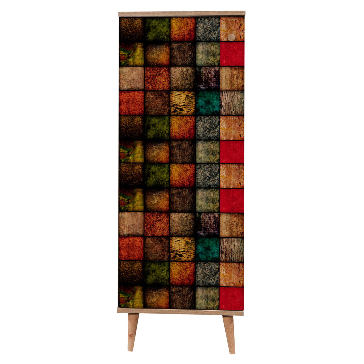 Παπουτσοθήκη-ντουλάπι σε sonama απόχρωση και πολύχρωμο σχέδιο.