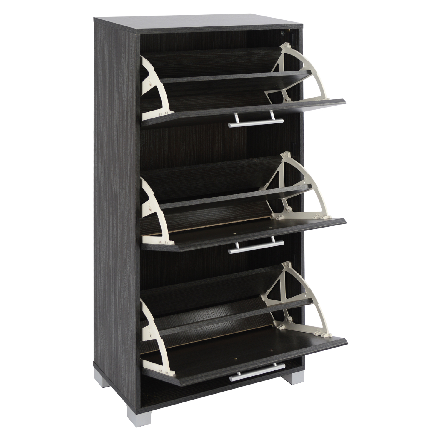 Παπουτσοθήκη από μελαμίνη άριστης ποιότητας, με 3 ανακλινόμενα ντουλάπια που χωράνε 18-21 ζευγάρια παπούτσια.
