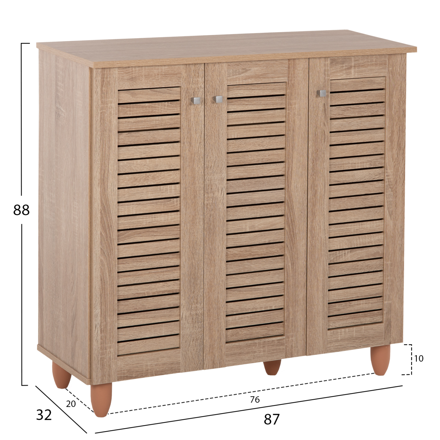 Σας παρουσιάζουμε την παπουτσοθήκη-ντουλάπι μελαμίνης PROLLY σε SONOMA χρώμα. Πρόκειται για ένα ψηλό σχετικά ντουλάπι με 2 ξεχωριστούς χώρους με 3 ράφια που δημιουργούν 4 χώρους αποθήκευσης, και κλείνει με 3 πόρτες με μεταλλικά κυβάκια χερούλια. Μια διπλή πόρτα για τον μεγαλύτερο χώρο, και μια μονή πόρτα για τον μικρότερο χώρο. Σκοπός μας είναι να σας βοηθήσουμε να οργανώσετε και να βελτιώσετε με τον καλύτερο δυνατό τρόπο οτιδήποτε θελήσετε.