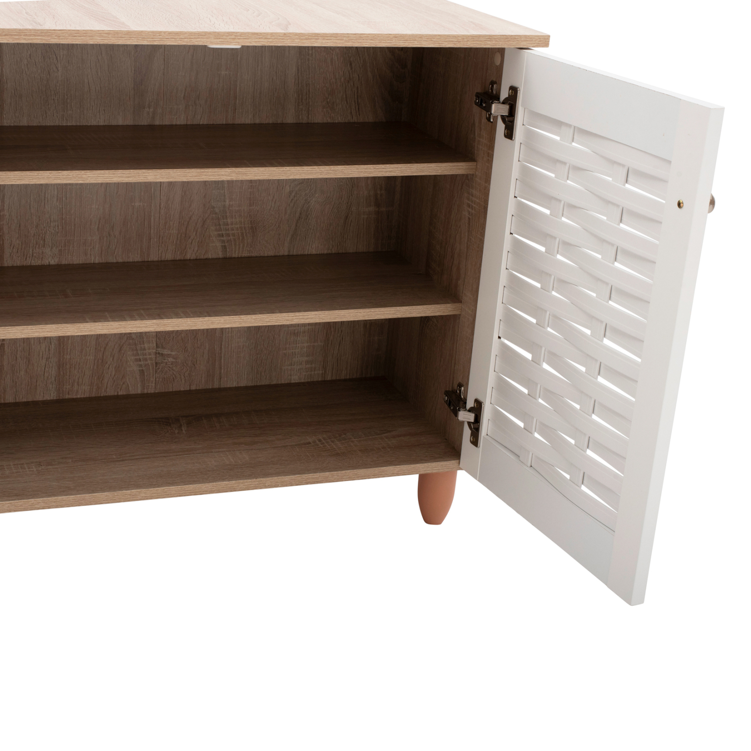 Η παπουτσοθήκη διαθέτει 2 ράφια, 3 επίπεδα αποθήκευσης και εσοχές στις πόρτες για να αερίζονται τα παπούτσια σας.