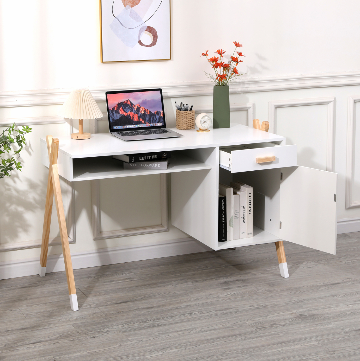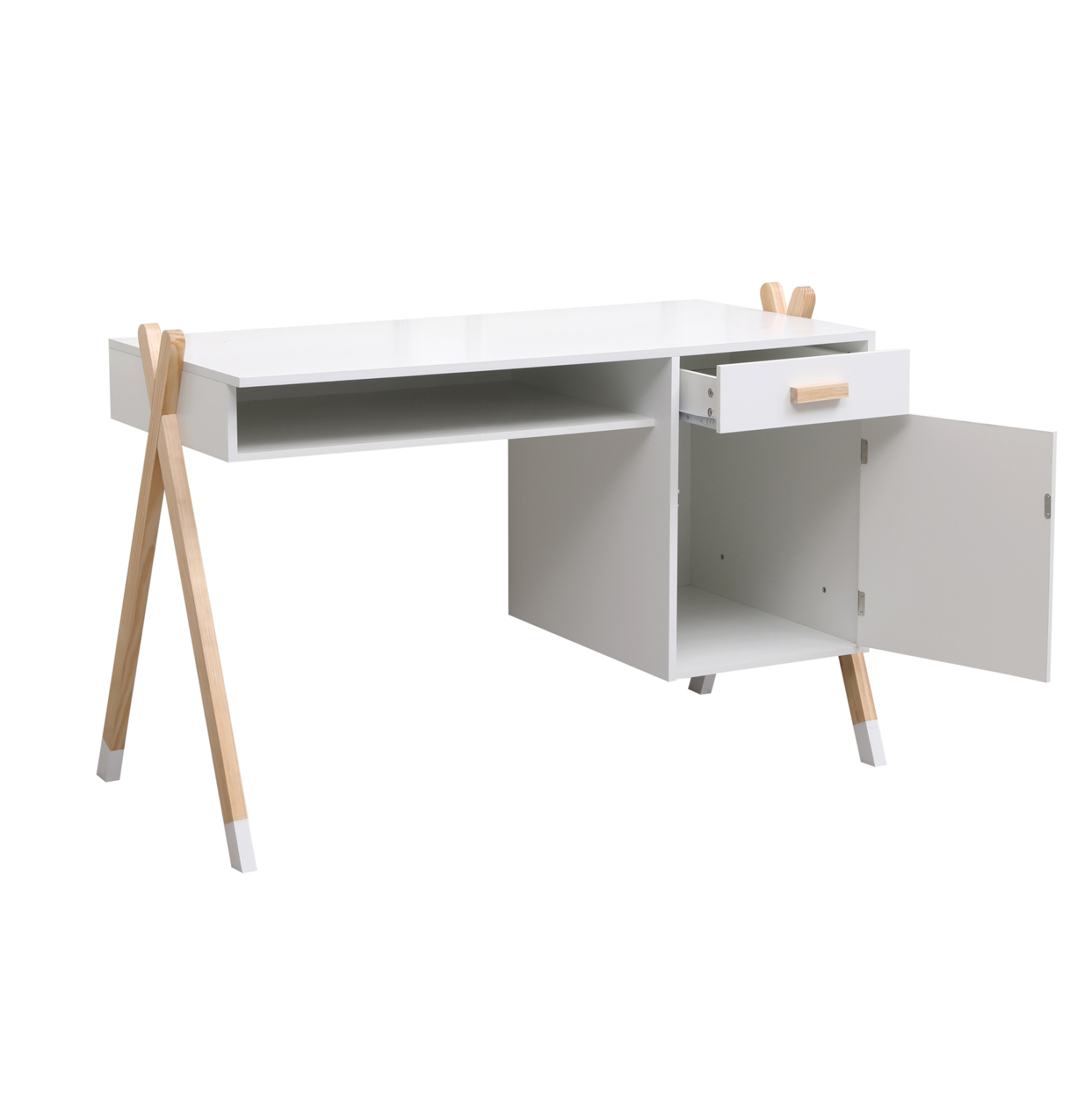 Το νέο παιδικό γραφείο PASCHAL σε ΛΕΥΚΟ χρώμα ήρθε για να αποτελέσει την καλύτερη λύση για το παιδικό δωμάτιο. Είναι βολικό σε διαστάσεις και διαθέτει έναν ανοιχτό αποθηκευτικό χώρο, ένα συρτάρι κι ένα ντουλαπάκι. Στηρίζεται σε δύο ξύλινα χιαστί πόδια σε ΦΥΣΙΚΟ χρώμα ξύλου στις δύο πλευρές. Είναι βαμμένο με αβλαβές μη τοξικό βερνίκι με βάση το νερό, ιδανικό για παιδιά.
