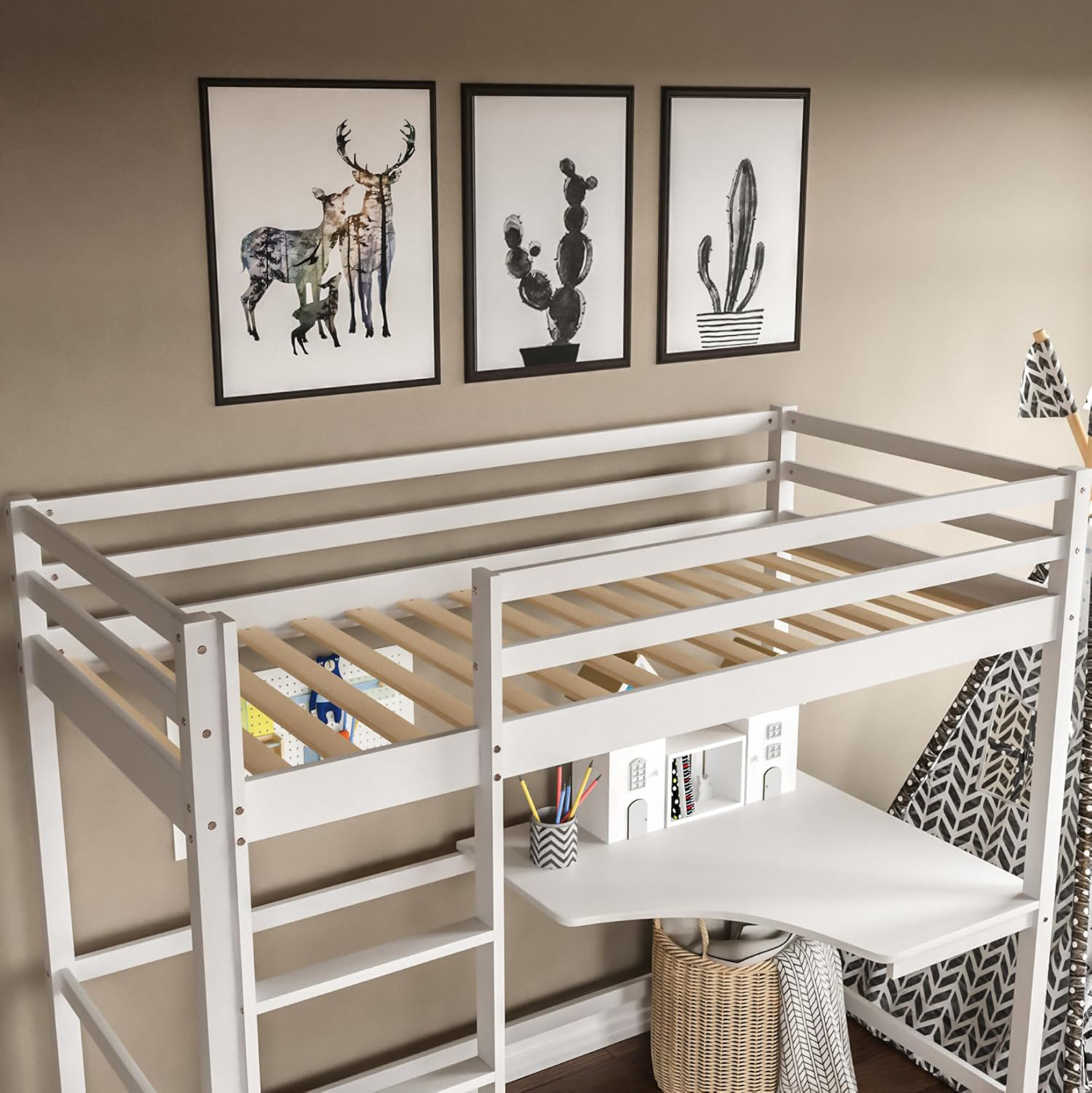 Σας παρουσιάζουμε το καινούργιο παιδικό κρεβάτι-κουκέτα AKRON σε διάσταση για μονό στρώμα 90x190 εκ, και αποτελεί μια άριστης ποιότητας, μοντέρνα και ασφαλή επιλογή για το παιδικό δωμάτιο. Είναι ξύλινο σε ΛΕΥΚΟ χρώμα βαμμένο με αβλαβές βερνίκι με βάση το νερό και μη τοξικό, ιδανικό για παιδιά. Το στρώμα τοποθετείται σε τάβλες κατασκευασμένες από ξυλεία κόντρα πλακέ. Η πρόσβαση στο κρεβάτι γίνεται με πρακτική σκάλα, ενώ στο κάτω μέρος υπάρχει γωνιακό γραφείο. Μια ιδανική πρόταση για δωμάτια με περιορισμένο χώρο.