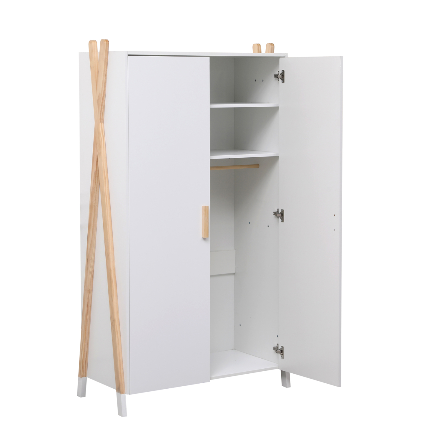 Σας παρουσιάζουμε την καινούργια παιδική (και όχι μόνο) ντουλάπα PASCHAL σε ΛΕΥΚΟ χρώμα. Είναι βολική σε διαστάσεις και διαθέτει 2 ράφια στο επάνω μέρος και μία μπάρα κρέμασης ρούχων από κάτω. Στηρίζεται σε δύο ξύλινα χιαστί πόδια σε ΦΥΣΙΚΟ χρώμα ξύλου στις δύο πλευρές. Είναι βαμμένο με αβλαβές βερνίκι με βάση το νερό και μη τοξικό, ιδανικό για παιδιά.