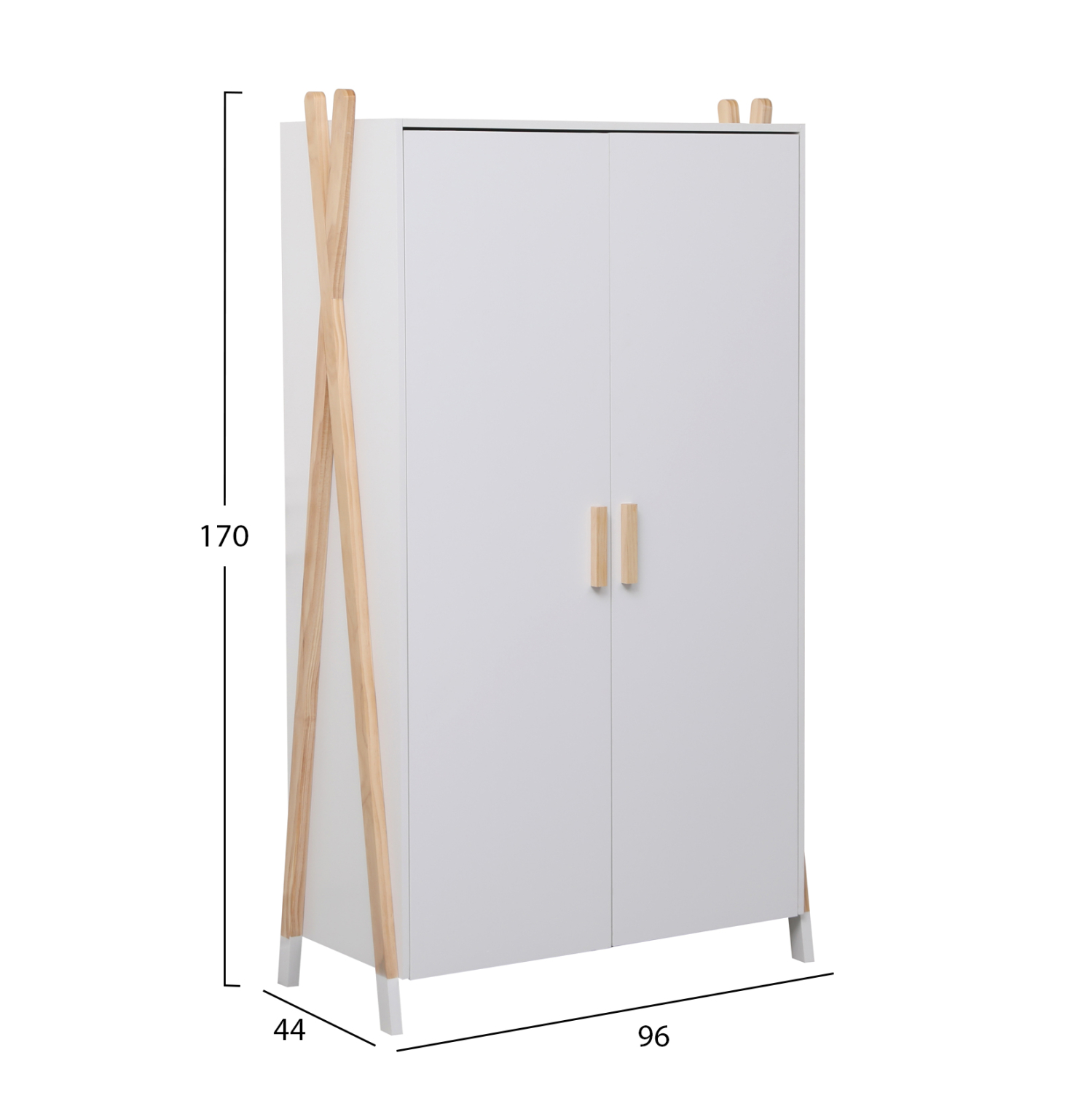 Παιδική ντουλάπα μελαμίνης σε ΛΕΥΚΟ χρώμα με σκελετό ξύλου πεύκου σε χιαστί διάταξη.