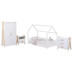 To σετ για παιδικό δωμάτιο PASCHAL περιλαμβάνει ένα κομοδίνο, ένα κρεβάτι τύπου Montessori με περιμετρικά κάγκελα, μια ντουλάπα, και μια συρταριέρα! Αναλυτικά: