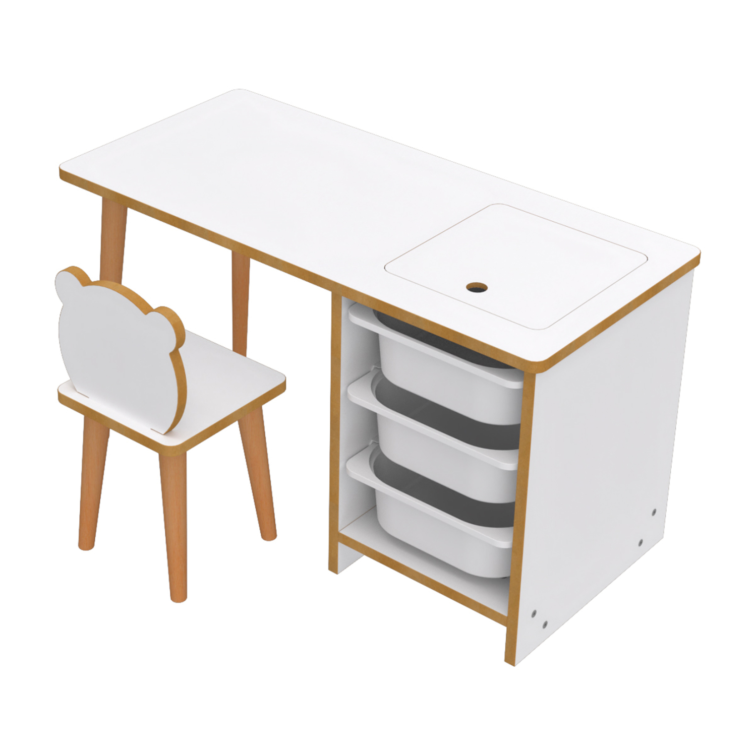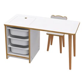 Αυτό το σετ παιδικού γραφείου περιλαμβάνει ένα γραφείο μικρών διαστάσεων κι ένα μικρό καρεκλάκι με πλάτη-φιγούρα για τους μικρούς μας φίλους! Το γραφείο διαθέτει στην μία πλευρά του 3 ΛΕΥΚΑ συρτάρια από πολυαιθυλένιο(πλαστικά). Όλη η κατασκευή είναι από μελαμίνη σε ΛΕΥΚΟ και ΦΥΣΙΚΟ χρώμα ξύλου. Με αυτό το σετ το παιδί σας θα έχει έναν λειτουργικό χώρο για τις χειροτεχνίες του, καθώς και μία πρακτική λύση αποθήκευσης. Εάν μάλιστα συνδυάσετε το γραφείο αυτό με τα ταιριαστά έπιπλα αποθήκευσης FRED, BOGG ή EZEKIEL, θα έχετε ένα ολοκληρωμένο σετ αποθήκευσης και οργάνωσης για το παιδικό δωμάτιο.