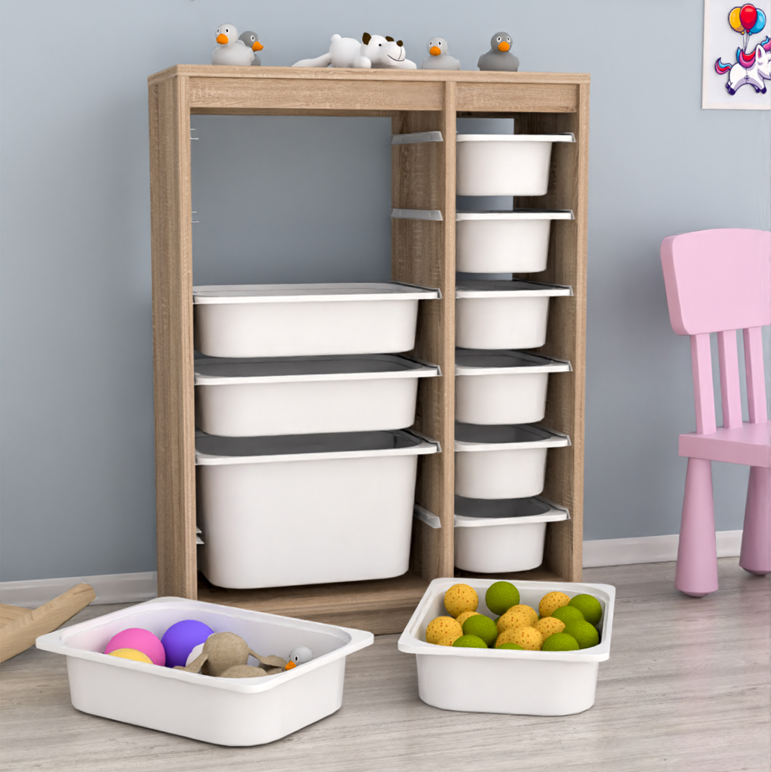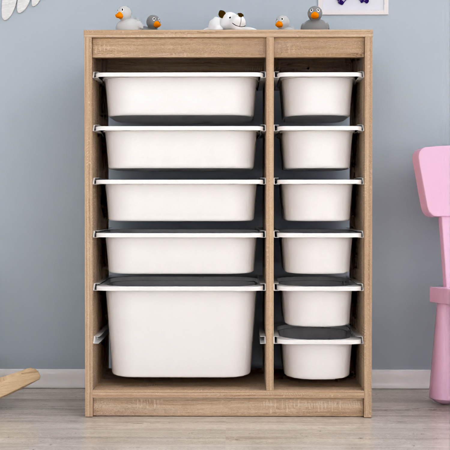 Η SANI είναι μια συρταριέρα με πλαίσιο από μελαμίνη σε χρώμα SONAMA, και 11 ΛΕΥΚΑ συρτάρια από πολυαιθυλένιο (πλαστικό) σε δύο στήλες με διαφορετικά μεγέθη. Ιδανική συρταριέρα για την καλύτερη οργάνωση του παιδικού δωματίου.