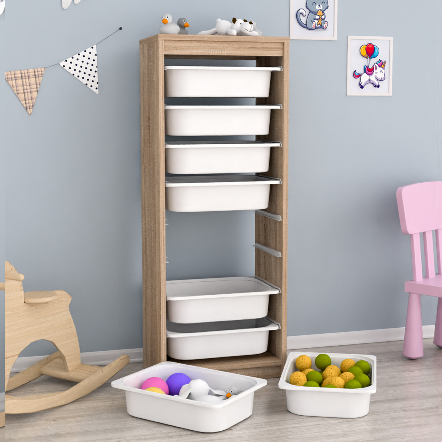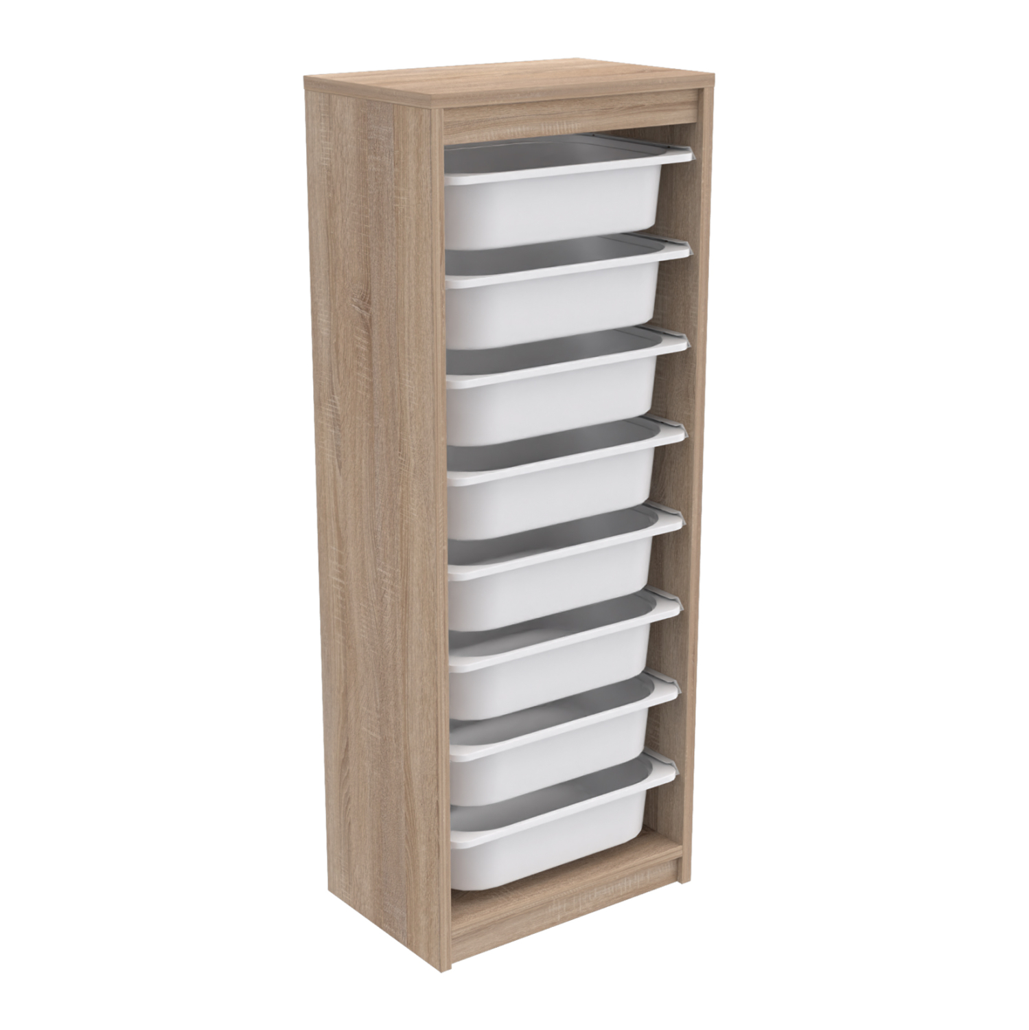 Η SANI είναι μια ψηλή συρταριέρα με πλαίσιο από μελαμίνη σε χρώμα SONAMA, με 8 ΛΕΥΚΑ συρτάρια από πολυαιθυλένιο (πλαστικό). Ιδανική συρταριέρα για την καλύτερη οργάνωση του παιδικού δωματίου.