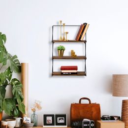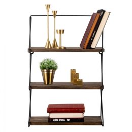 ΡΑΦΙ ΤΟΙΧΟΥ ΑΠΟ ΞΥΛΟ ΕΛΑΤΟΥ ΚΑΙ ΜΑΥΡΟ ΜΕΤΑΛΛΟ HM9112.01 60x15x30Υ εκ.
