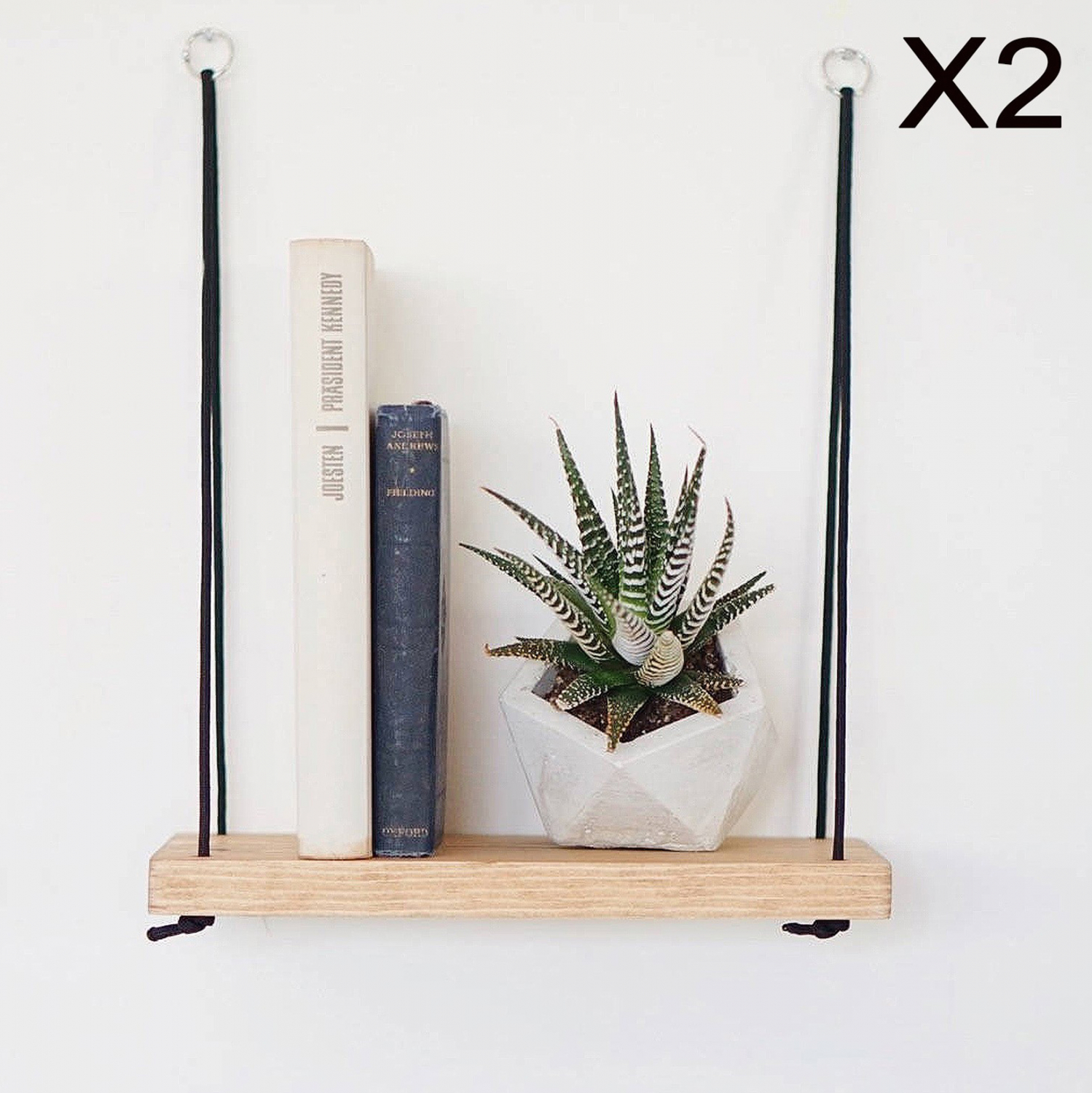 Διαθέτει δύο επίπεδα ως χώρο αποθήκευσης των βιβλίων και μικροαντικειμένων σου, που συγκρατούνται από σχοινιά σε μαύρο χρώμα.