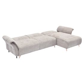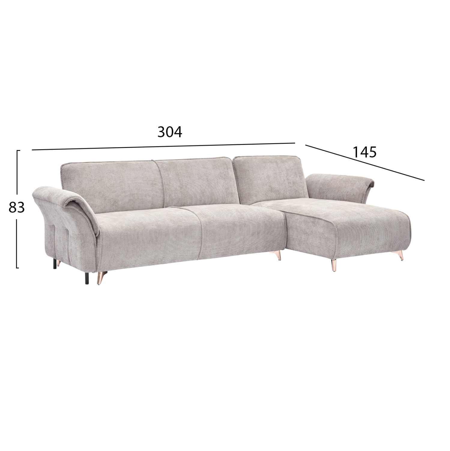 Η επένδυση του καναπέ έχει γίνει με ποιοτικό ανάγλυφο ύφασμα σε ΜΠΕΖ απόχρωση. Τα μπράτσα έχουν έντονη κλίση για μεγαλύτερη άνεση αλλά το σημαντικότερο είναι ότι είναι αφαιρούμενα, πράγμα που κάνει τον καναπέ αναστρέψιμο! Το κομμάτι που δημιουργεί την γωνία, μπορεί να τοποθετηθεί είτε δεξιά, είτε αριστερά δίνοντας την ευχέρεια σε εσάς να τον ταιριάξετε όπως σας βολεύει στον χώρο σας.