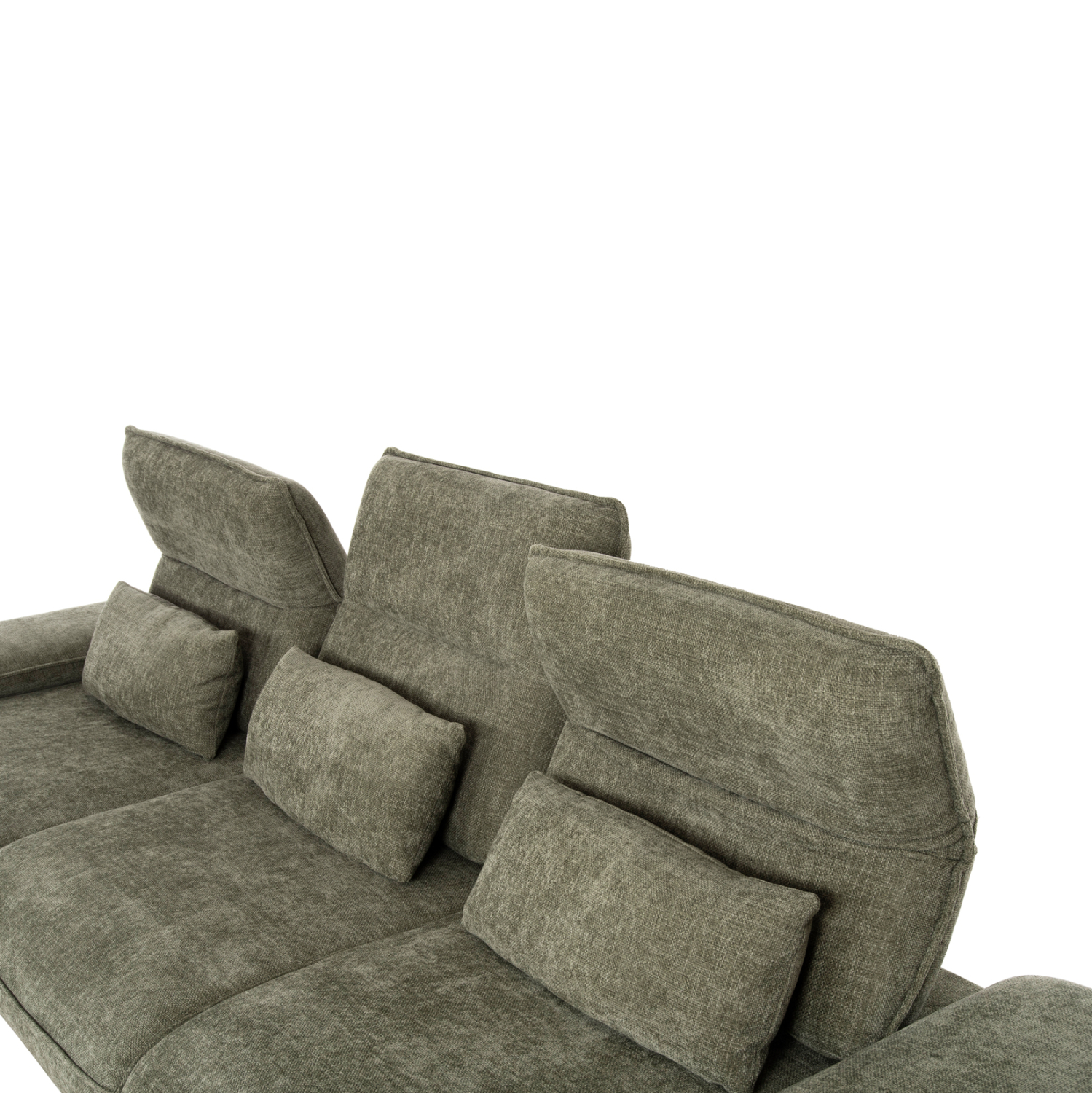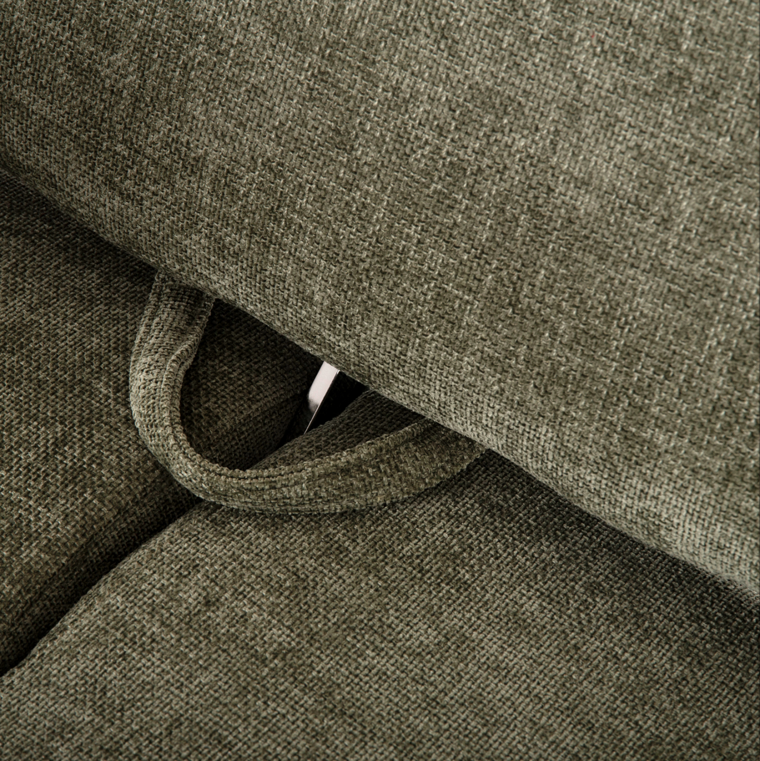 Σας παρουσιάζουμε τον CONVERT, έναν εκπληκτικό μεγάλο καναπέ-κρεβάτι σε διαμόρφωση ΑΡΙΣΤΕΡΗΣ γωνίας (όπως τον κοιτάς) επενδυμένο με ποιοτικό ύφασμα σε ΚΥΠΑΡΙΣΣΙ χρώμα. Το design του κλέβει τις εντυπώσεις και μαγνητίζει τα βλέμματα, χάρη στις ξεκάθαρες «γραμμές» του. Τα μπράτσα έχουν την μορφή μαξιλαριών αλλά είναι μέρος του καναπέ και μπορούν με μεταλλικό ΙΝΟΧ μηχανισμό να ανεβοκατεβαίνουν σε 3 επίπεδα. Η πλάτη αποτελείται από 3 μεγάλα τετράγωνα μαξιλάρια τα οποία, όπως και τα μπράτσα, μετακινούνται με υφασμάτινα χερούλια και μεταλλικό μηχανισμό προς τα πίσω αφήνοντας αρκετό χώρο για ένα μονό κρεβάτι. Το κομμάτι που σχηματίζει την γωνία είναι ίδιας αισθητικής και ενώνεται με τον κυρίως καναπέ με κατακόρυφους αναρτήρες πάνελ. Το κάθισμα διαθέτει γεμίσματα αφρού μεσαίας σκληρότητας σε συνδυασμό με ελατήρια pocket springs, προσφέροντας απαράμιλλη άνεση. Τέλος, την εικόνα συμπληρώνουν τα ψηλά σκούρα ασημί μεταλλικά πόδια, αλλά και τα 3 μικρά διακοσμητικά μαξιλαράκια.
