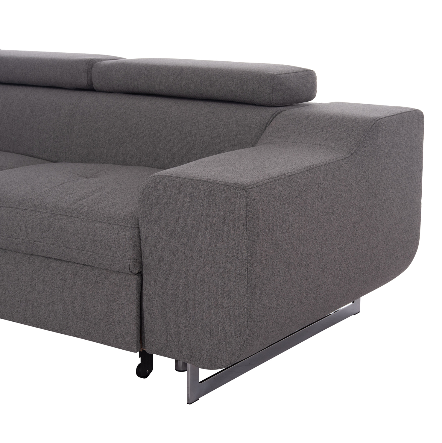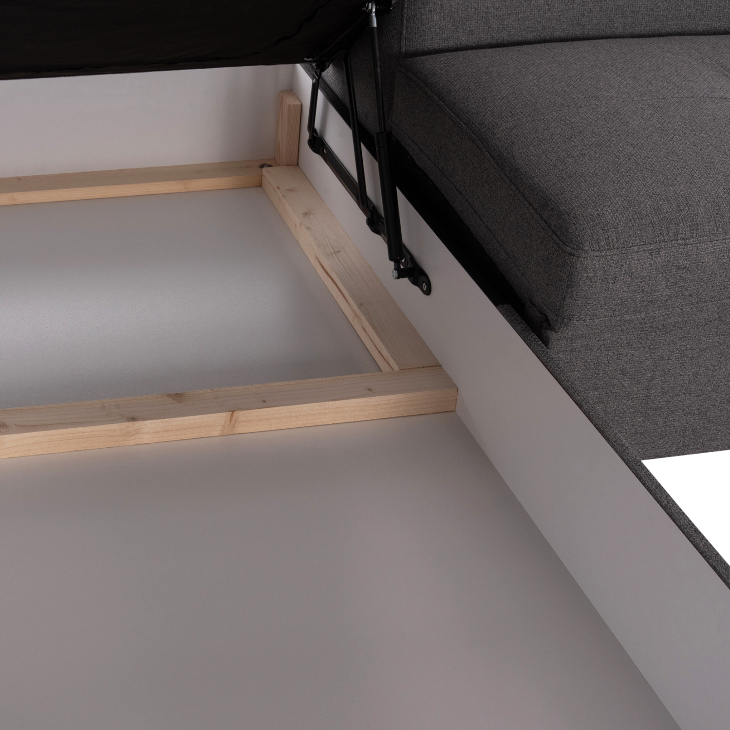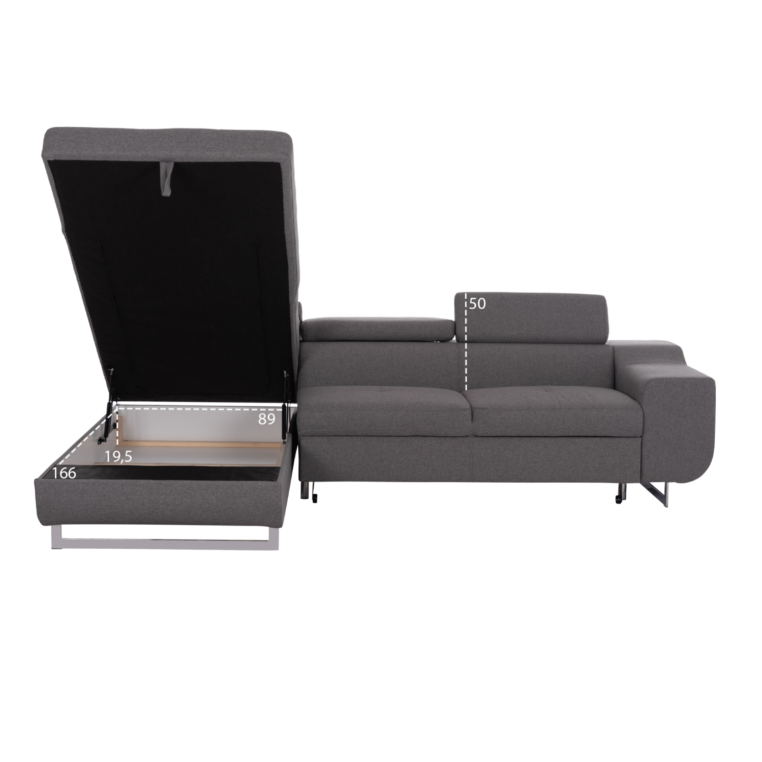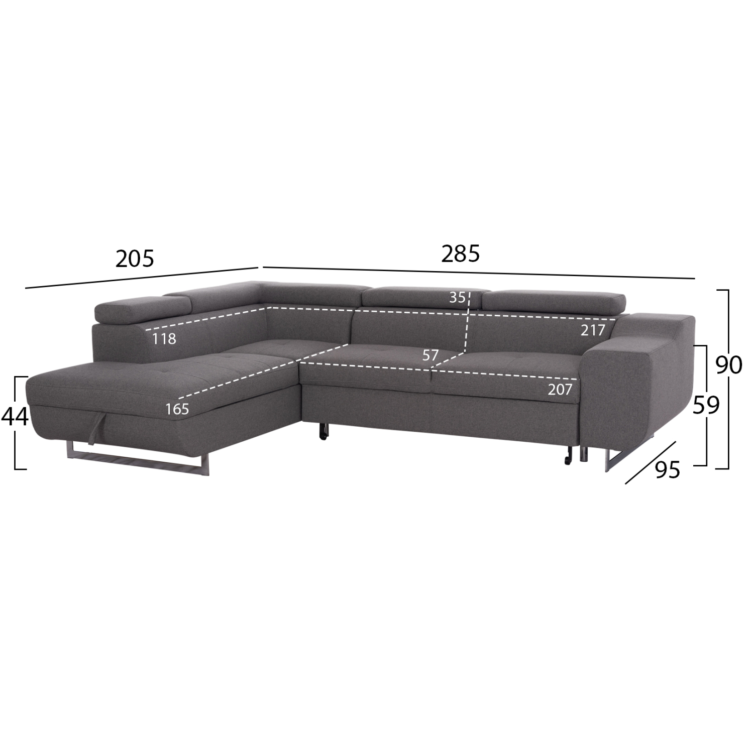Ο ENCORE είναι ένας εξαιρετικός γωνιακός καναπές-κρεβάτι. Η επένδυσή του είναι με εξαιρετικής ποιότητας ΓΚΡΙ ύφασμα και τα πόδια είναι μεταλλικά και ψηλά. Τα χαρακτηριστικά του, όμως, τον κάνουν να ξεχωρίζει από κάθε άποψη! Η πλευρά που σχηματίζει την μόνιμη ΑΡΙΣΤΕΡΗ γωνία διαθέτει αποθηκευτικό χώρο ο οποίος είναι προσβάσιμος χάρη σε έναν εύχρηστο μηχανισμό με χερούλι-ιμάντα που ανασηκώνει το κάθισμα και το κρατάει ανασηκωμένο για να μπορείτε απερίσπαστοι να βάζετε και να βγάζετε ότι θέλετε. Το κρεβάτι σχηματίζεται τραβώντας το κάτω μέρος της αριστερής πλευράς και ανασηκώνοντας το εξτρά στρώμα (ράντζο) που είναι τοποθετημένο εκεί. Τέλος, τα 3 προσκέφαλα (εκτός της γωνίας) είναι ρυθμιζόμενα με λειτουργία recline, ολοκληρώνοντας με τον καλύτερο τρόπο την απαράμιλλη πρακτικότητα αυτού του υπέροχου καναπέ.
