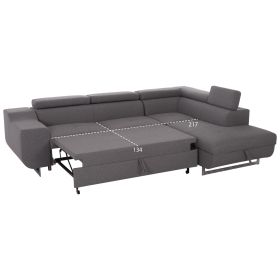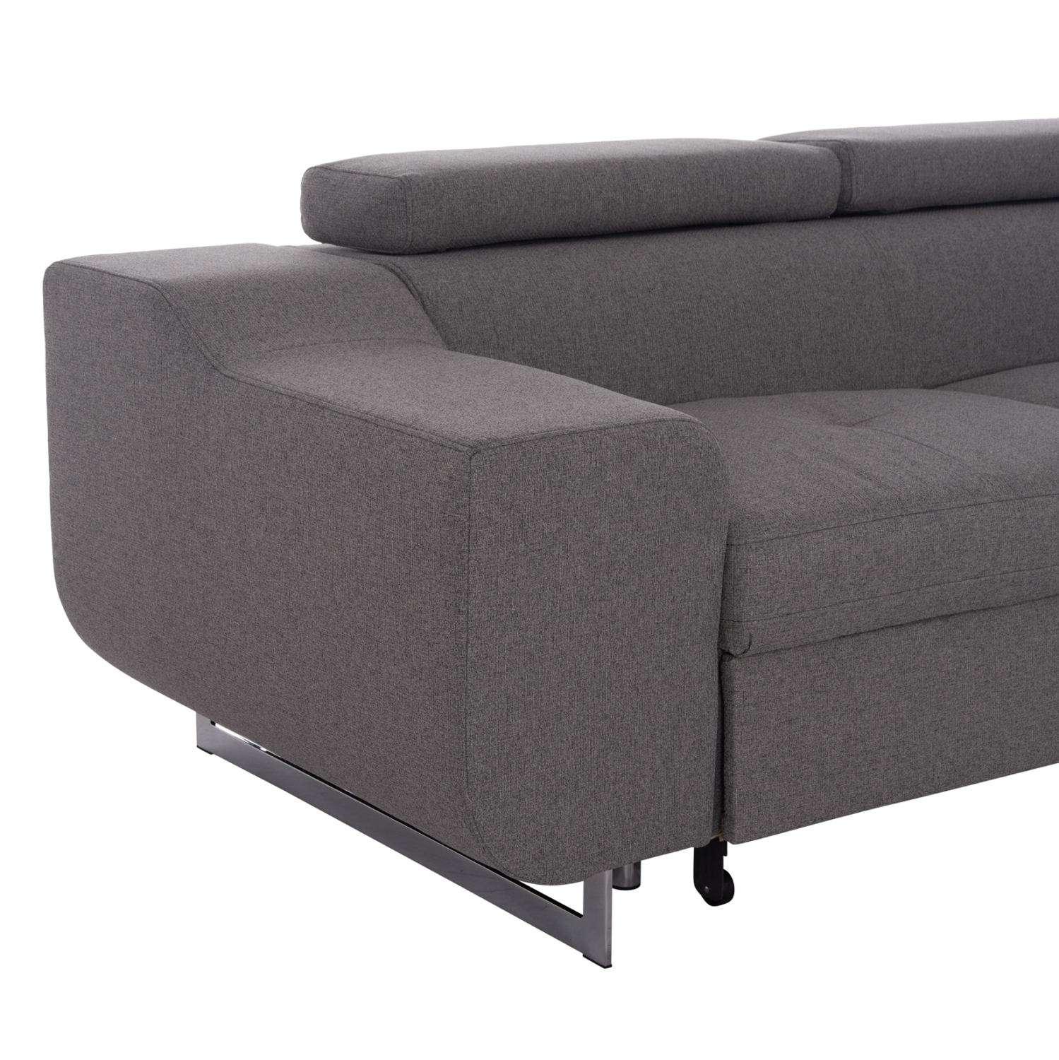 Ο ENCORE είναι ένας εξαιρετικός γωνιακός καναπές-κρεβάτι. Η επένδυσή του είναι με εξαιρετικής ποιότητας ΓΚΡΙ ύφασμα και τα πόδια είναι μεταλλικά και ψηλά. Τα χαρακτηριστικά του, όμως, τον κάνουν να ξεχωρίζει από κάθε άποψη! Η πλευρά που σχηματίζει την μόνιμη ΔΕΞΙΑ γωνία διαθέτει αποθηκευτικό χώρο ο οποίος είναι προσβάσιμος χάρη σε έναν εύχρηστο μηχανισμό με χερούλι-ιμάντα που ανασηκώνει το κάθισμα και το κρατάει ανασηκωμένο για να μπορείτε απερίσπαστοι να βάζετε και να βγάζετε ότι θέλετε. Το κρεβάτι σχηματίζεται τραβώντας το κάτω μέρος της αριστερής πλευράς και ανασηκώνοντας το εξτρά στρώμα (ράντζο) που είναι τοποθετημένο εκεί. Τέλος, τα 3 προσκέφαλα (εκτός της γωνίας) είναι ρυθμιζόμενα με λειτουργία recline, ολοκληρώνοντας με τον καλύτερο τρόπο την απαράμιλλη πρακτικότητα αυτού του υπέροχου καναπέ.