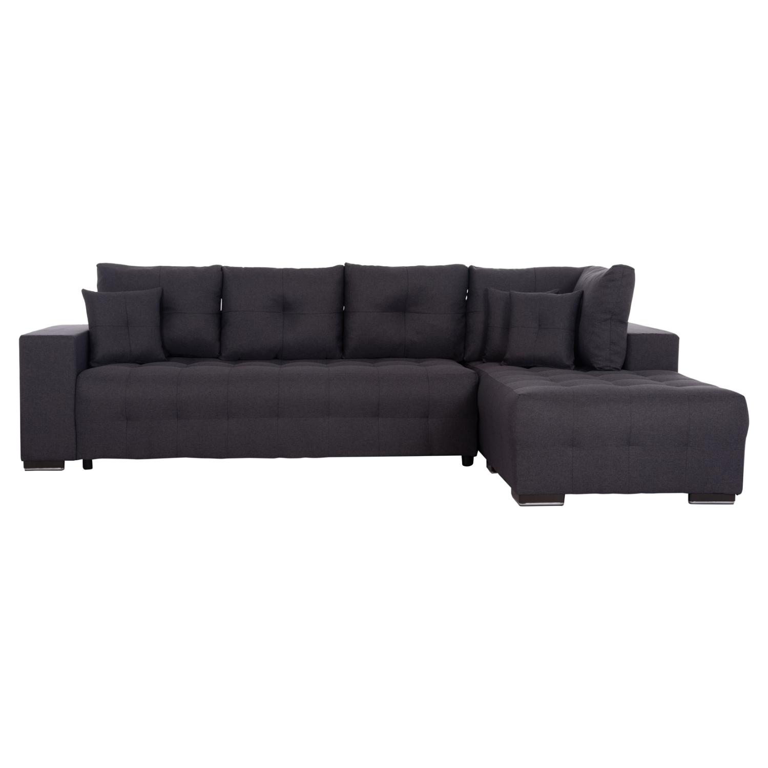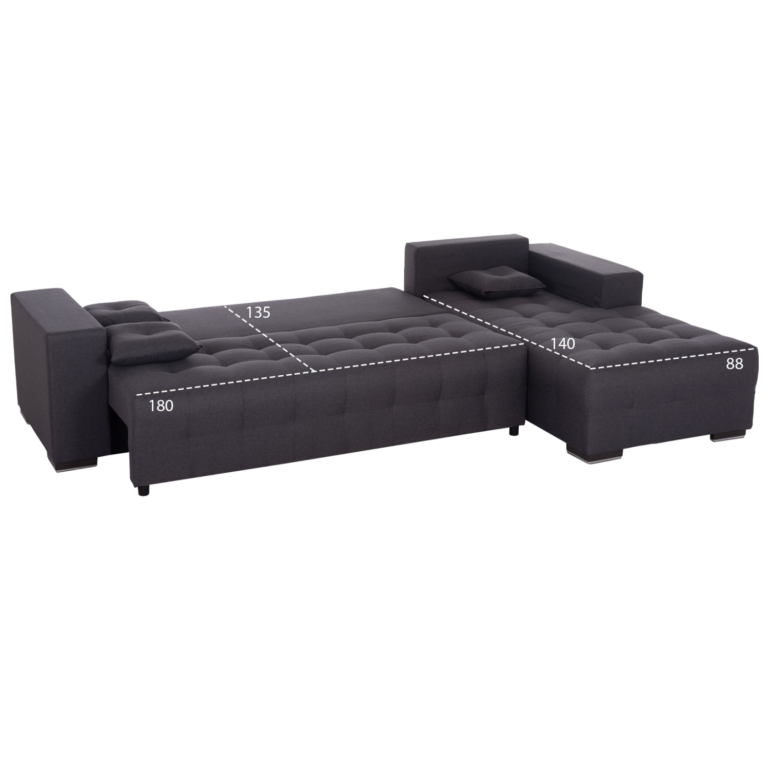 Ο TRENDSTON είναι ένας μεγάλος γωνιακός καναπές-κρεβάτι (ΔΕΞΙΑ ΓΩΝΙΑ). Η επένδυσή του είναι με εξαιρετικής ποιότητας ΓΚΡΙ ύφασμα με καπιτονέ τεχνοτροπία τόσο στα μαξιλάρια όσο και στο κάθισμα, ενώ τα πόδια είναι εξαιρετικά χαμηλά. Διαθέτει 5 μεγάλα μαξιλάρια πλάτης και 3 μικρότερα διακοσμητικά. Το κρεβάτι σχηματίζεται τραβώντας το κάθισμα του κυρίως καναπέ, «ρίχνοντας» ταυτόχρονα μπροστά την κοντή πλάτη. Εκεί ακριβώς δημιουργείται και ένας άκρως ικανοποιητικός αποθηκευτικός χώρος. Τέλος, το μπράτσο στην αριστερή πλευρά είναι φαρδύ και άνετο, ολοκληρώνοντας με τον καλύτερο τρόπο την απαράμιλλη πρακτικότητα αυτού του υπέροχου καναπέ.