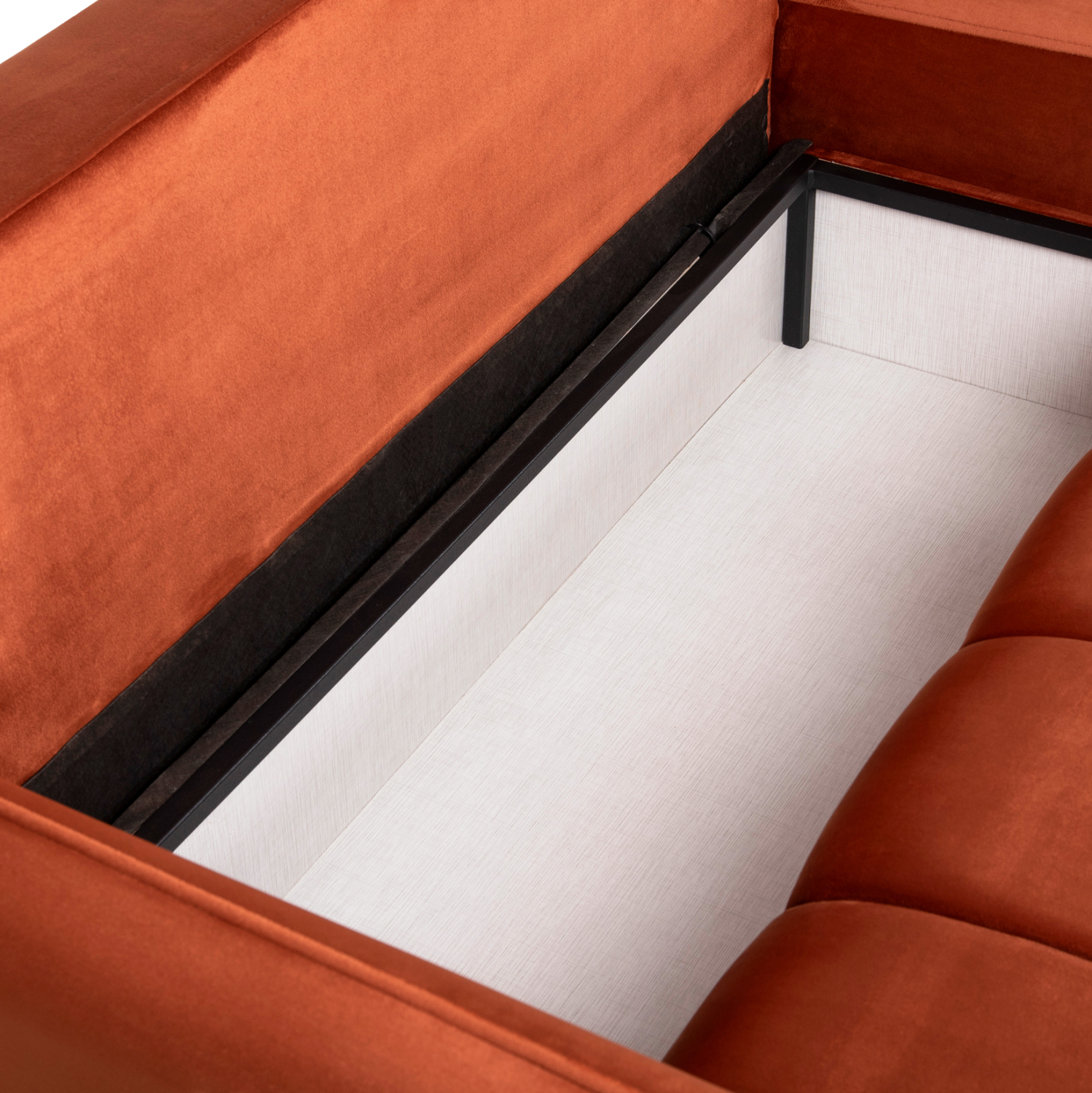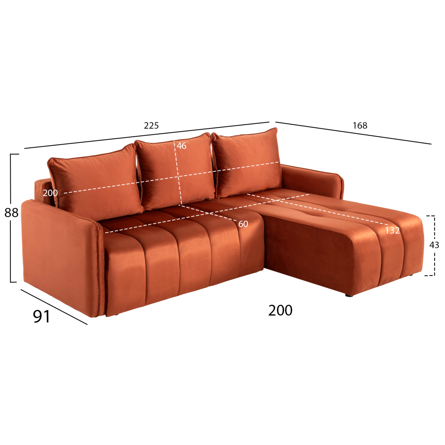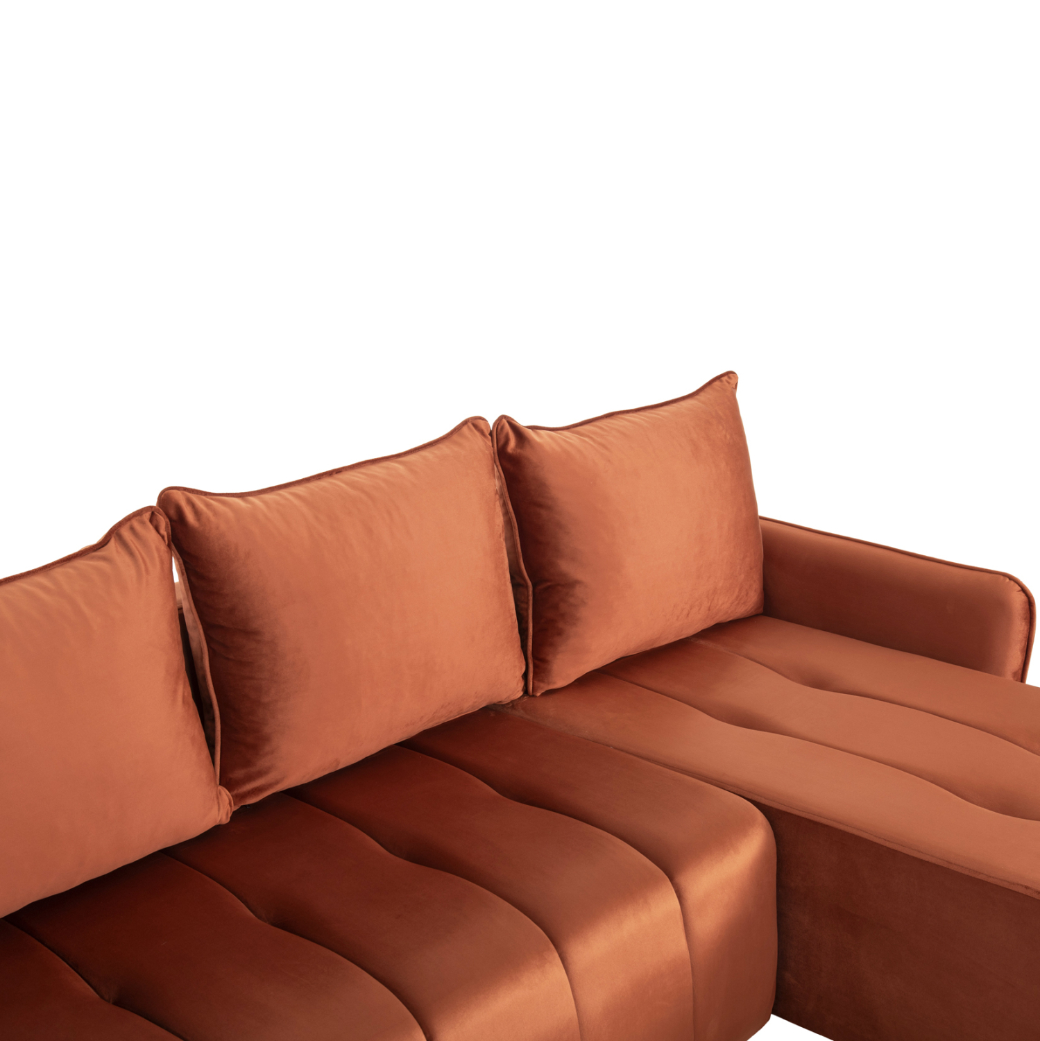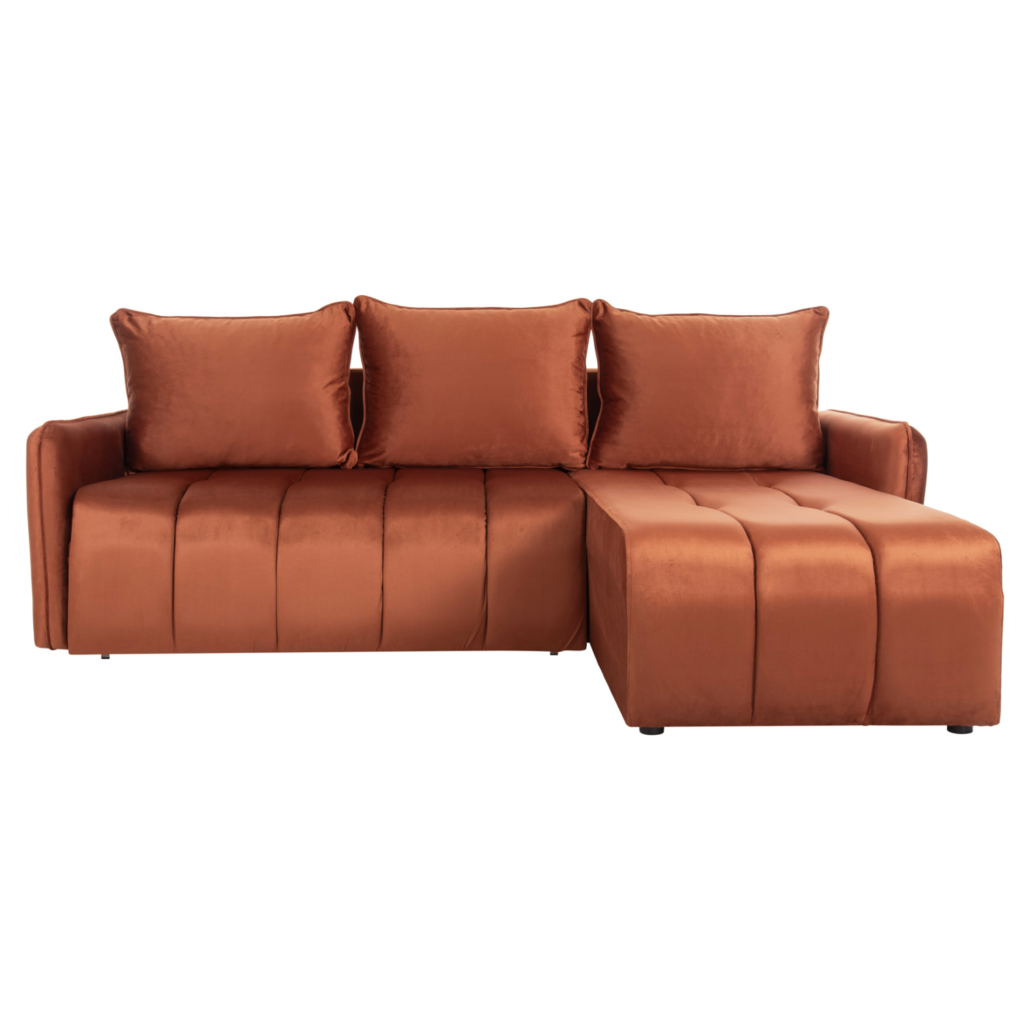 Ο PROTON είναι ένας 3-θέσιος καναπές που είναι αναστρέψιμος, δηλαδή να διαμορφωθεί είτε σε δεξιά, είτε σε αριστερή γωνία. Είναι επενδυμένος με βελούδο σε ΠΟΡΤΟΚΑΛΙ χρώμα ενώ το κομμάτι που σχηματίζει την γωνία ενώνεται με τον κυρίως καναπέ με κατακόρυφους αναρτήρες πάνελ. Διαθέτει 3 μαξιλάρια πλάτης, ενώ το κάθισμα με το στυλ καπιτονέ ραφών, διαθέτει γεμίσματα αφρού μεσαίας σκληρότητας και φτάνει σαν «ποδιά» μέχρι χαμηλά και στα 2 κομμάτια του καναπέ. Το χαρακτηριστικό, όμως, που κάνει αυτόν τον υπέροχο καναπέ να ξεχωρίζει, είναι ότι με δύο απλές κινήσεις γίνεται διπλό κρεβάτι, προσφέροντας μια ποιοτική λύση όπου και όταν χρειαστεί! Σύρετε το κάθισμα μπροστά (σπρώχνοντας από το πίσω μέρος), το οποίο είναι εύκολο επειδή στηρίζεται σε ράγες στον μεταλλικό σκελετό, και μετά διπλώνετε την πλάτη του καναπέ η οποία ανοίγει και κλείνει πανεύκολα! Και σαν να μην έφτανε αυτό, ακριβώς κάτω από το κάθισμα του κυρίως καναπέ, υπάρχει αποθηκευτικός χώρος που ολοκληρώνει την πρακτικότητα αυτού του μοναδικού επίπλου!