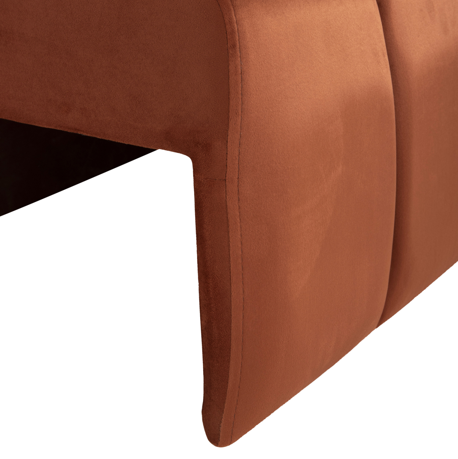 Ο σκελετός του καναπέ είναι μεταλλικός, ενώ το ύφασμα που καλύπτει ολόκληρο τον καναπέ είναι βελούδο εξαιρετικής ποιότητας. Πρόκειται για ένα ύφασμα απαλό, χαλαρό, απολαυστικό και φινετσάτο που είναι αδύνατον να του αντισταθεί κάποιος. Το θετικό είναι ότι μπορεί να εναρμονιστεί εύκολα με κάθε είδος διακόσμησης, προσδίδοντας στο χώρο φινέτσα και καλαισθησία.