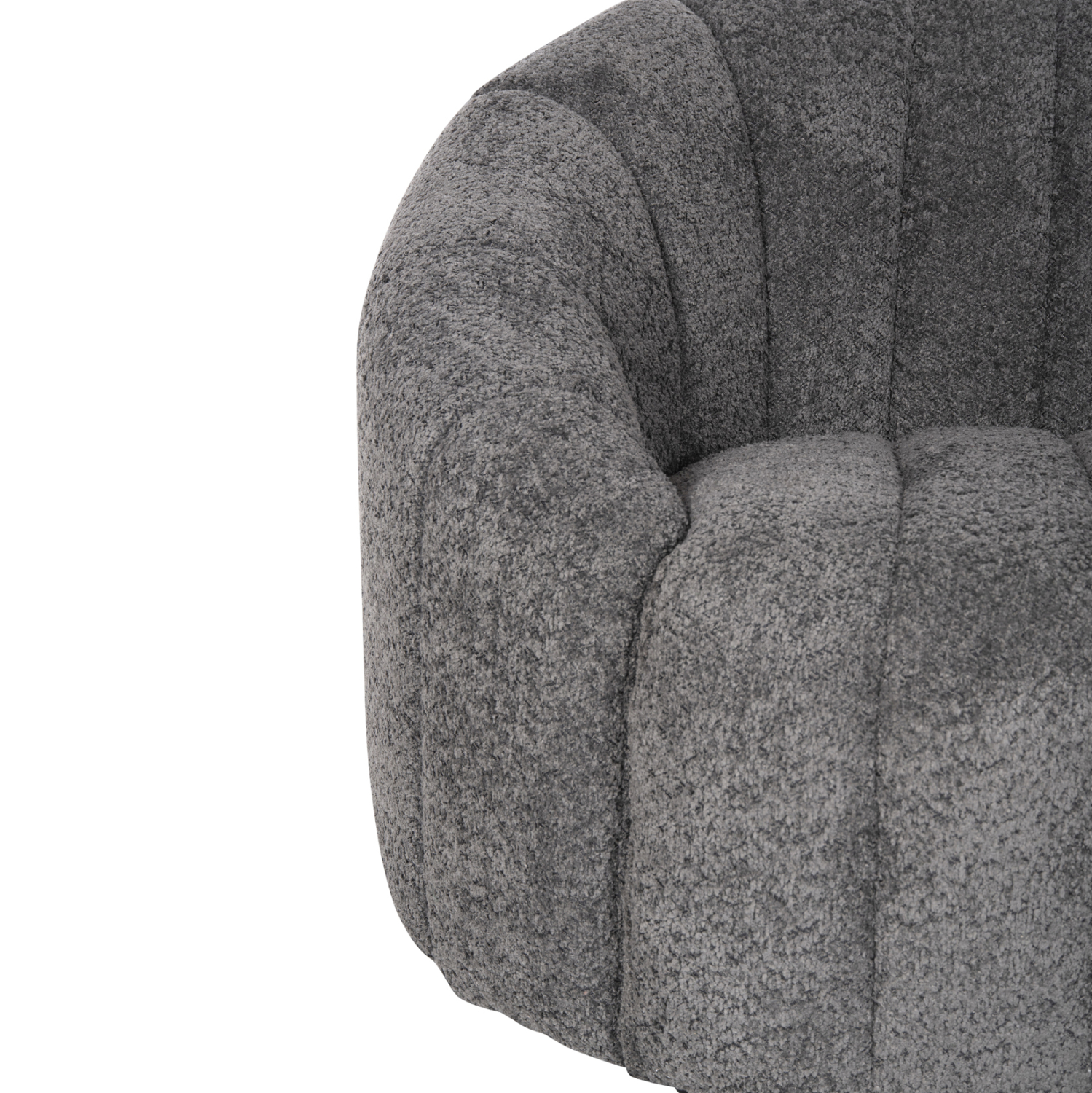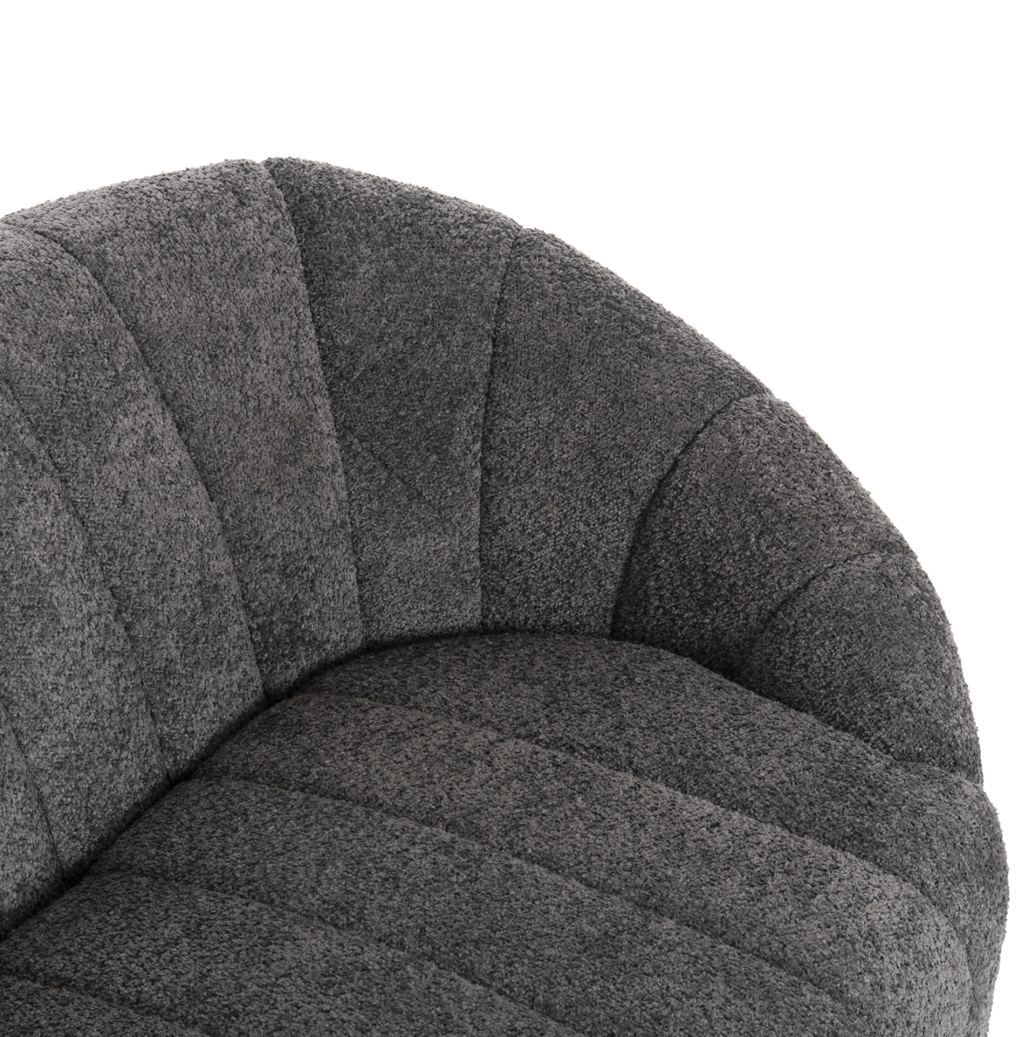 Η επένδυση του καναπέ έχει γίνει εξολοκλήρου με εξαιρετικής ποιότητας μπουκλέ ύφασμα. Μπουκλέ λέγεται οποιοδήποτε ύφασμα που έχει κόμπο-μπούκλα στην ύφανσή του. Κατασκευάζεται από σχεδόν όλες τις πρώτες ύλες (αν και συνήθως είναι συνθετικό) με ειδικές κλωστές με κόμπους ή πολύ στριμμένα νήματα, έτσι ώστε να έχει σγουρή επιφάνεια. Δεν τσαλακώνει και μπορεί να είναι μονόχρωμο, μελανζέ ,καρώ ή τουιντ.