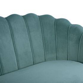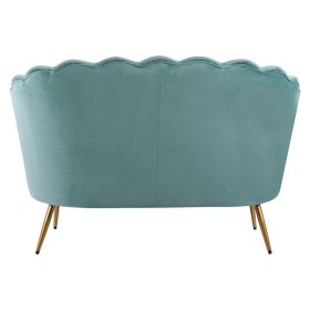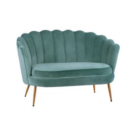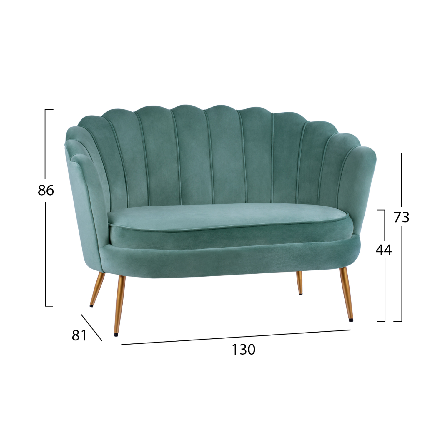 Καναπές διθέσιος COQUILLE από βελούδο σε φυστικί απόχρωση με μεταλλικά πόδια σε χρυσή απόχρωση.