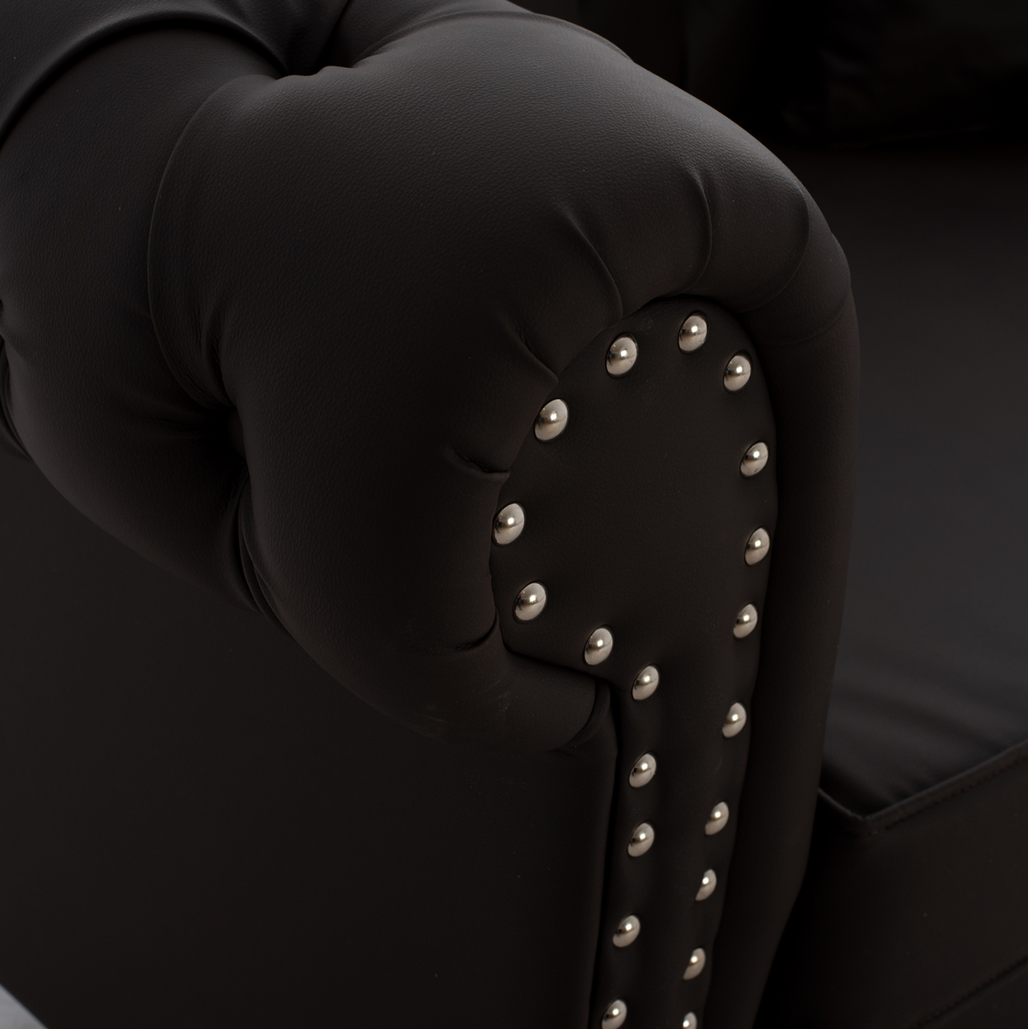Καναπές διθέσιος τύπου Chesterfield, με τεχνόδερμα καφέ 152x85x80 εκ.