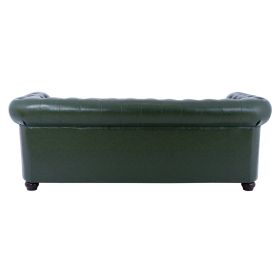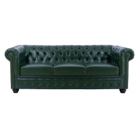 Καναπές τριθέσιος τύπου Chesterfield, με τεχνόδερμα κυπαρισσί απόχρωση 208x90x73 εκ.