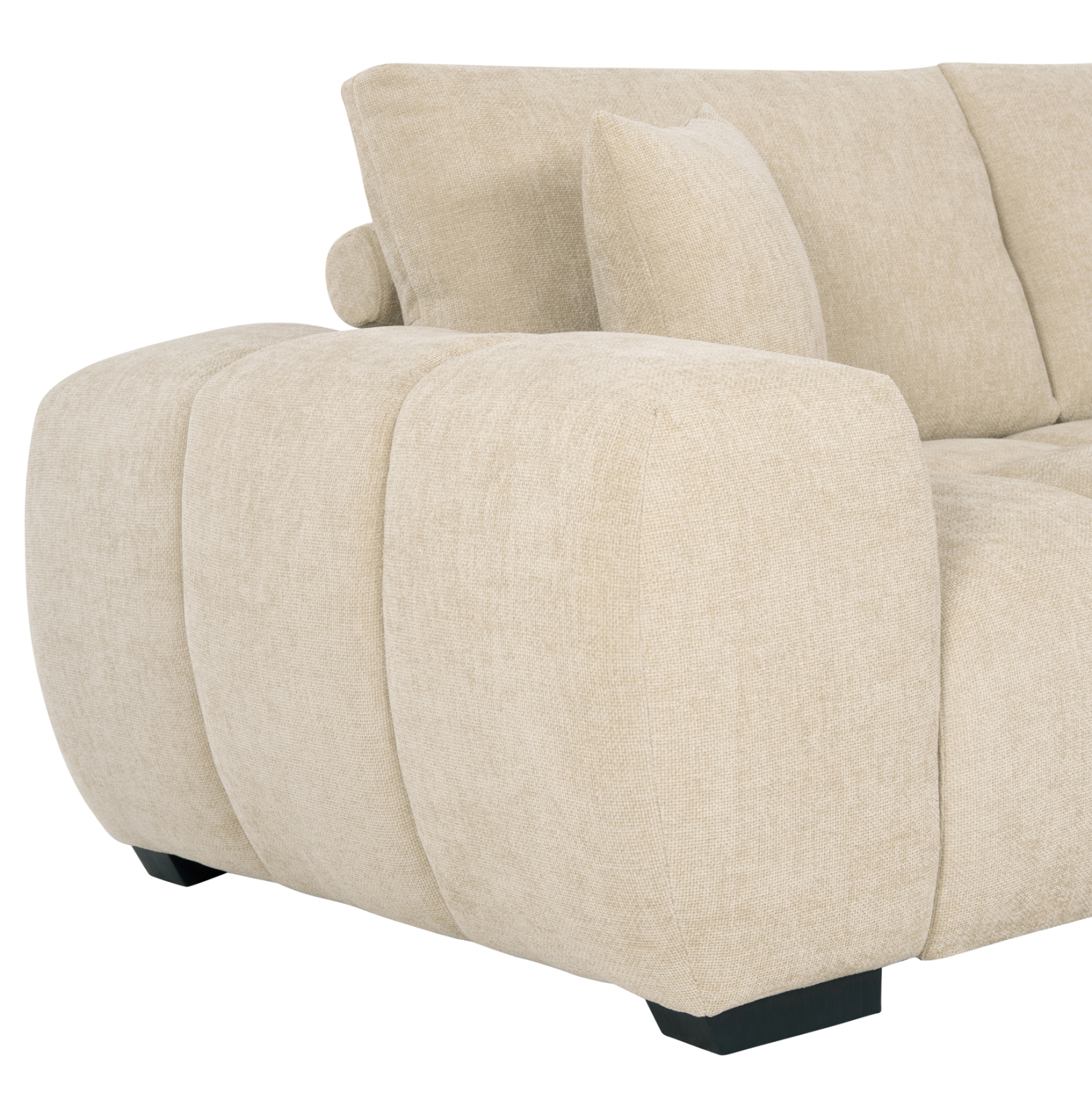 Σας παρουσιάζουμε τον COVEN, έναν υπέροχο μεγάλο καναπέ σε διαμόρφωση ΔΕΞΙΑΣ γωνίας (όπως τον κοιτάς) επενδυμένο με ποιοτικό ύφασμα σε ΕΚΡΟΥ χρώμα. Ξεκινώντας από το design, ο καναπές φτάνει μέχρι πολύ χαμηλά σε στυλ «ποδιάς» και διαθέτει φαρδιά χαμηλά πόδια-βάσεις σε μαύρο χρώμα. Τα μπράτσα είναι εντυπωσιακά φαρδιά, ενώ η επένδυση είναι σε στυλ καπιτονέ με τις έντονες ραφές! Το κομμάτι που σχηματίζει την γωνία είναι ίδιας αισθητικής και ενώνεται με τον κυρίως καναπέ με κατακόρυφους αναρτήρες πάνελ. Η πλάτη είναι χαμηλή και διαθέτει 4 μαξιλάρια πλάτης με «καραμέλες»(μακρόστενα κυλινδρικά μαξιλάρια) στο πίσω μέρος τους για καλύτερη στήριξη, αλλά και 3 μικρότερα διακοσμητικά μαξιλαράκια. Το κάθισμα διαθέτει γεμίσματα αφρού μεσαίας σκληρότητας σε συνδυασμό με ελατήρια pocket springs, προσφέροντας απαράμιλλη άνεση. Και φυσικά, σας προσφέρουμε αυτόν τον καναπέ με εγγύηση σκελετού 3 ετών!