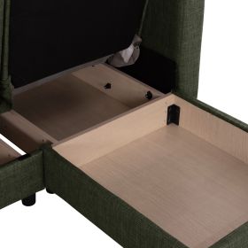 Η επένδυση του κρεβατιού έχει γίνει με ύφασμα εξαιρετικής ποιότητας, ενώ τα γεμίσματα τόσο στο κάθισμα, όσο και στην πλάτη είναι από μέτριας σκληρότητας αφρώδες υλικό που προσφέρει άνεση και ποιότητα στον ύπνο, όταν μετατρέπεται σε κρεβάτι.