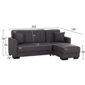 Ο GHUFRAN είναι ένας βολικός και πρακτικός γωνιακός καναπές. Το χρώμα της επένδυσης ολόκληρου του καναπέ είναι ΓΚΡΙ, όπως και τα δύο διακοσμητικά μαξιλαράκια. Το εξαιρετικής ποιότητας ύφασμα της επένδυσης φέρει κατακόρυφες ραφές μόνο στην πλάτη, ενώ τα γεμίσματα του καθίσματος αλλά και της πλάτης είναι από αφρολέξ που προσφέρει άνεση και σωστή στήριξη εάν χρησιμοποιηθεί και ως κρεβάτι.