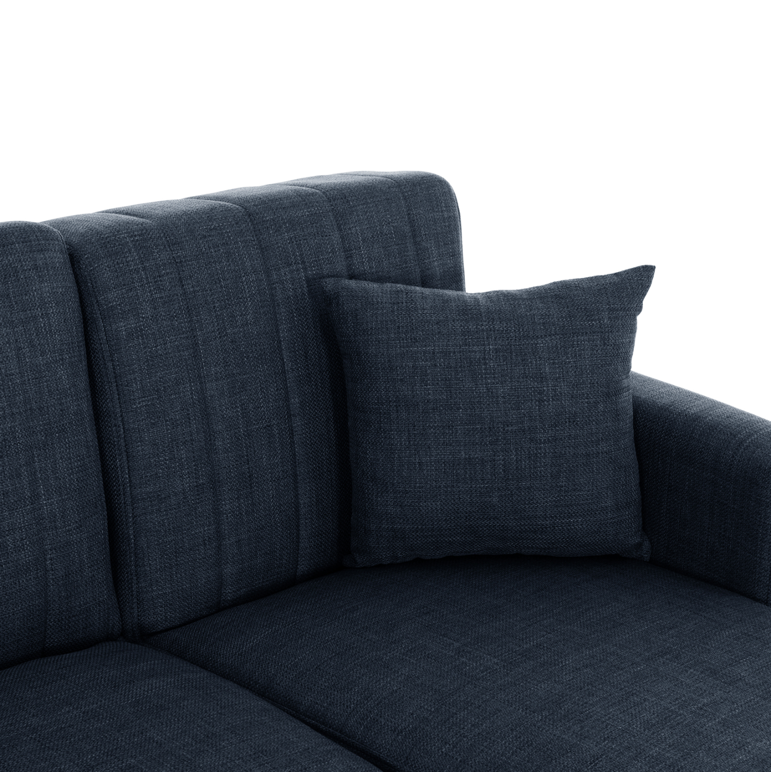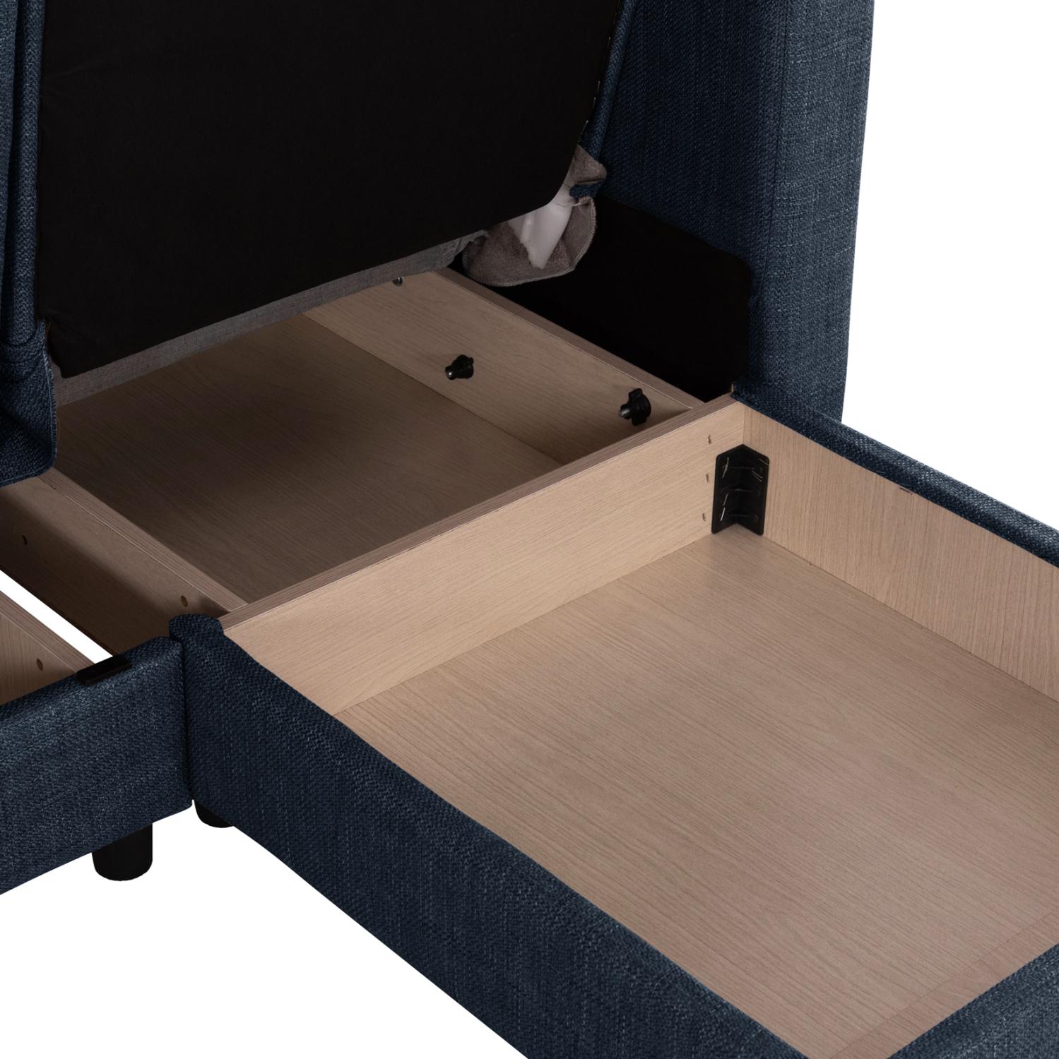 Ο GHUFRAN είναι ένας βολικός και πρακτικός γωνιακός καναπές. Το χρώμα της επένδυσης ολόκληρου του καναπέ είναι ΜΠΛΕ, όπως και τα δύο διακοσμητικά μαξιλαράκια. Το εξαιρετικής ποιότητας ύφασμα της επένδυσης φέρει κατακόρυφες ραφές μόνο στην πλάτη, ενώ τα γεμίσματα του καθίσματος αλλά και της πλάτης είναι από αφρολέξ που προσφέρει άνεση και σωστή στήριξη εάν χρησιμοποιηθεί και ως κρεβάτι.