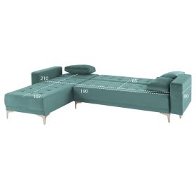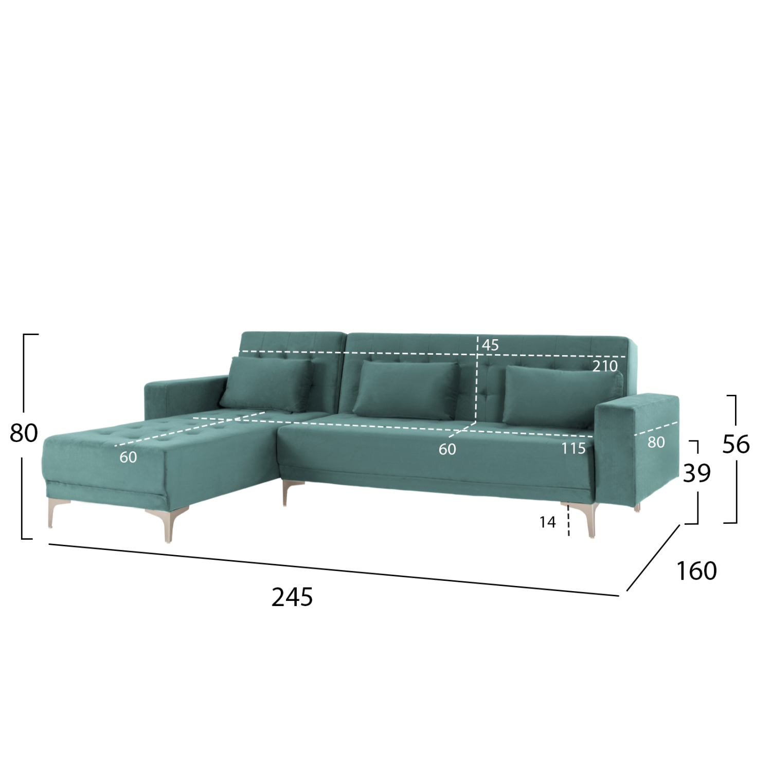 Ο καναπές γωνία ELIZA, επενδυμένος με καπιτονέ βελούδινο ύφασμα σε απόχρωση ΒΕΡΑΜΑΝ είναι ελκυστικότατος. Αποτελείται από ένα 3-θέσιο καναπέ κι ένα ανάκλιντρο που «φτιάχνει» την γωνία. Η γωνία αυτή είναι αναστρέψιμη αφού το ανάκλιντρο μπορεί να τοποθετηθεί και να προσαρμοστεί είτε δεξιά είτε αριστερά ανάλογα με τις απαιτήσεις σας, εξοικονομώντας χώρο. Επίσης, μπορεί να μετατραπεί σε κρεβάτι με μηχανισμούς αναδίπλωσης, τόσο στον 3-θέσιο καναπέ, όσο και στο ανάκλιντρο. Το κάθισμα είναι άνετο και ευρύχωρο ενώ τα πόδια είναι μεταλλικά σε ΑΣΗΜΙ χρώμα.