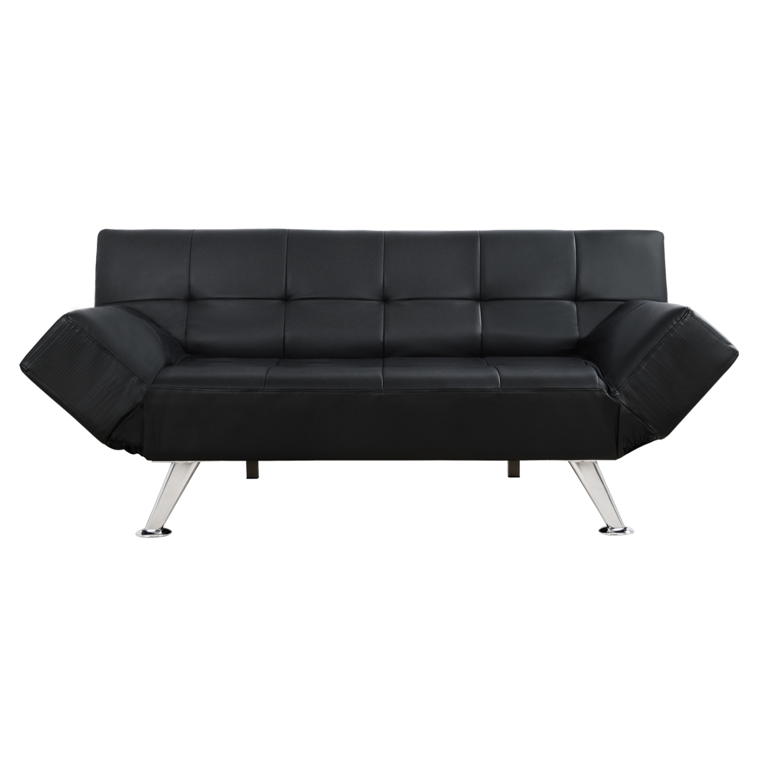 Καναπές κρεβάτι, επενδεδυμένος με τεχνόδερμα σε μαύρη απόχρωση 189x93x82 εκ.