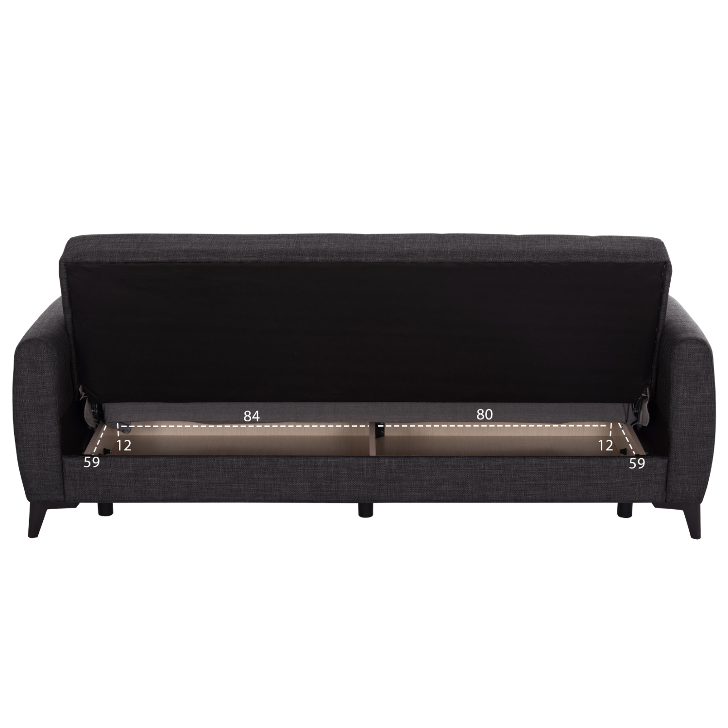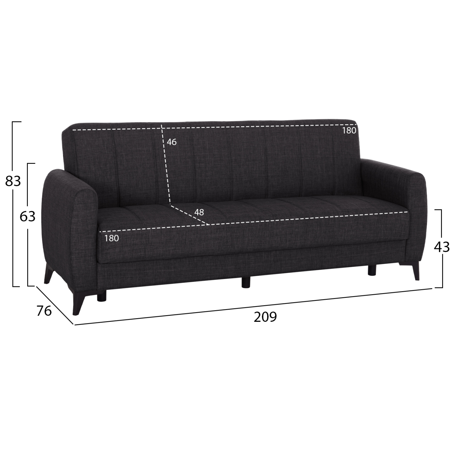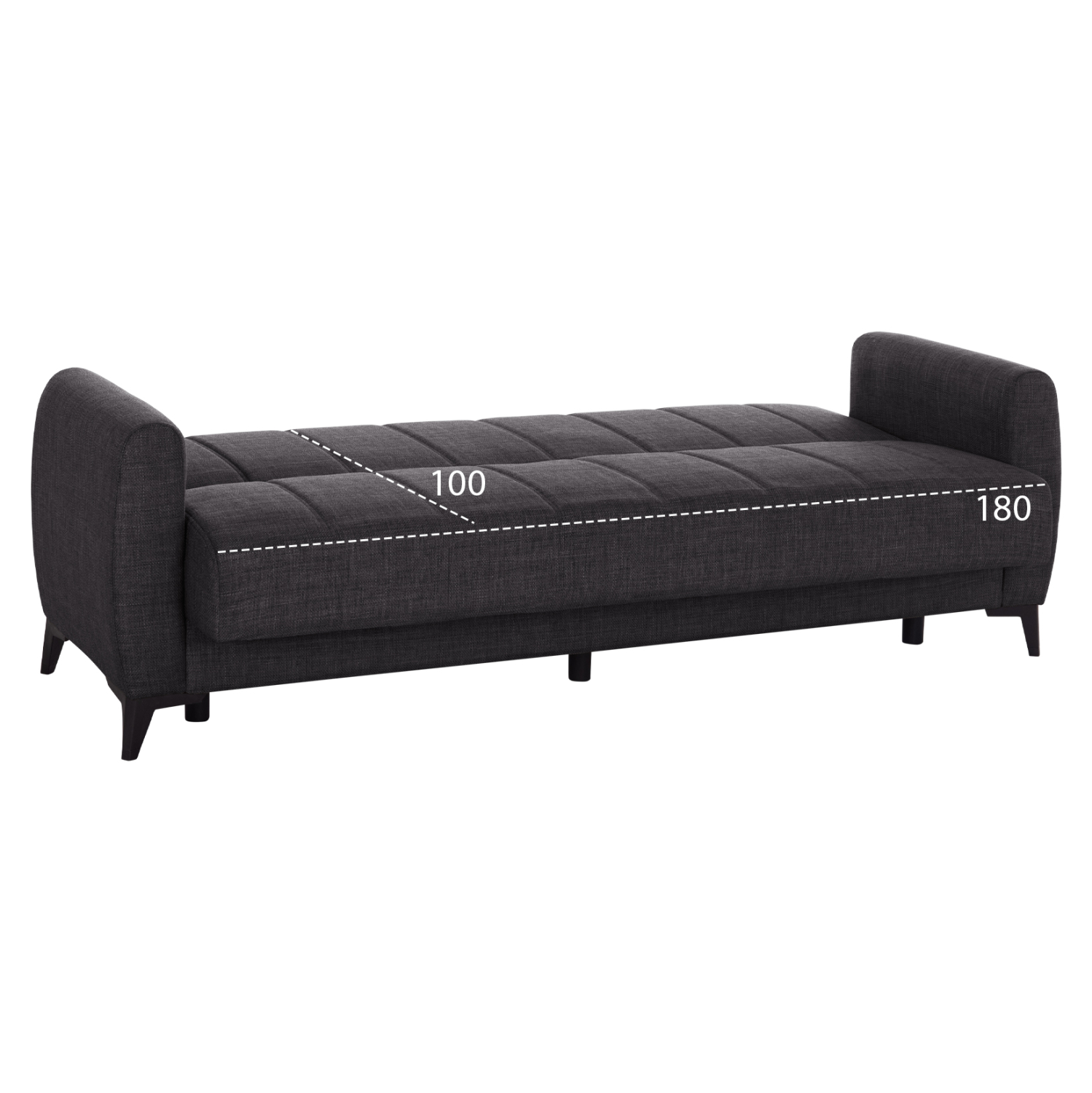 Η μετατροπή του σε κρεβάτι γίνεται με έναν εύχρηστο μηχανισμό «κλικ-κλακ» που «ρίχνει» την πλάτη. Και για να μην υπάρξει ποτέ κανένα πρόβλημα με τον καναπέ, υπάρχουν επιπλέον πόδια που χρησιμεύουν όταν ο καναπές γίνεται κρεβάτι! Συνέπεια αυτού, βέβαια, είναι και η ύπαρξη δύο αποθηκευτικών χώρων κάτω από το κάθισμα του καναπέ, οι οποίοι πάντα είναι χρήσιμοι, ειδικά σε φοιτητικά σπίτια. Τέλος, τα πόδια του καναπέ σε μαύρο χρώμα, είναι ψηλά επιτρέποντας το εύκολο καθάρισμα χωρίς να χρειαστεί να μετακινηθεί ολόκληρος ο καναπές.