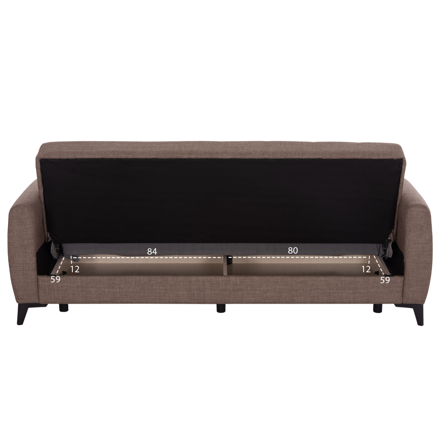 Η μετατροπή του σε κρεβάτι γίνεται με έναν εύχρηστο μηχανισμό «κλικ-κλακ» που «ρίχνει» την πλάτη. Και για να μην υπάρξει ποτέ κανένα πρόβλημα με τον καναπέ, υπάρχουν επιπλέον πόδια που χρησιμεύουν όταν ο καναπές γίνεται κρεβάτι! Συνέπεια αυτού, βέβαια, είναι και η ύπαρξη δύο αποθηκευτικών χώρων κάτω από το κάθισμα του καναπέ, οι οποίοι πάντα είναι χρήσιμοι, ειδικά σε φοιτητικά σπίτια. Τέλος, τα πόδια του καναπέ σε μαύρο χρώμα, είναι ψηλά επιτρέποντας το εύκολο καθάρισμα χωρίς να χρειαστεί να μετακινηθεί ολόκληρος ο καναπές.