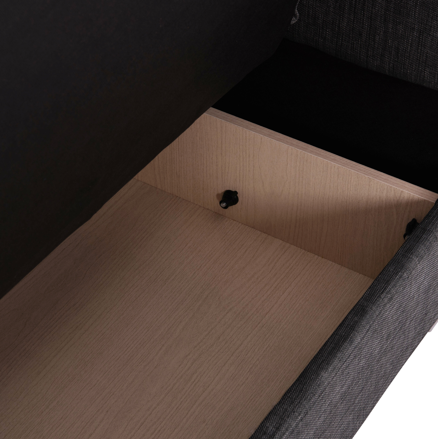 Η επένδυση του κρεβατιού έχει γίνει με ύφασμα εξαιρετικής ποιότητας, ενώ τα γεμίσματα τόσο στο κάθισμα, όσο και στην πλάτη είναι από μέτριας σκληρότητας αφρώδες υλικό που προσφέρει άνεση και ποιότητα στον ύπνο, όταν μετατρέπεται σε κρεβάτι.