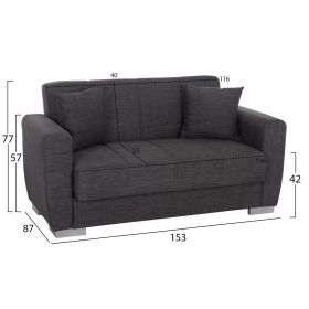 Ο ΗΜ3241.03 είναι ένας 2-θέσιος καναπές όμορφος και πρακτικός. Η επένδυσή του είναι με εξαιρετικής ποιότητας ΓΚΡΙ ύφασμα όπως και τα 2 διακοσμητικά μαξιλαράκια. Αισθητικά, η πλάτη και το κάθισμα του καναπέ φέρουν κάθετες ραφές που τον ομορφαίνουν ενώ τα μπράτσα είναι φαρδιά τόσο-όσο για να προσφέρουν άνεση και στήριξη.