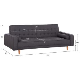 Καναπές κρεβάτι, επενδεδυμένος με ύφασμα σε γκρι απόχρωση.