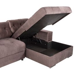 ΓΩΝΙΑΚΟΣ ΚΑΝΑΠΕΣ-ΚΡΕΒΑΤΙ ΜΕ ΑΠΟΘ.ΧΩΡΟ SAFFIRA HM3303.01L ΓΚΡΙ ΥΦΑΣΜΑ 270x195x100Υεκ.