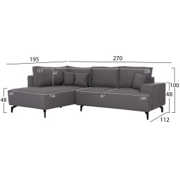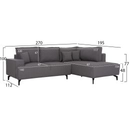 ΓΩΝΙΑΚΟΣ ΚΑΝΑΠΕΣ-ΚΡΕΒΑΤΙ ΜΕ ΑΠΟΘ.ΧΩΡΟ SAFFIRA HM3303.01R ΓΚΡΙ ΥΦΑΣΜΑ 270x195x100Υεκ.