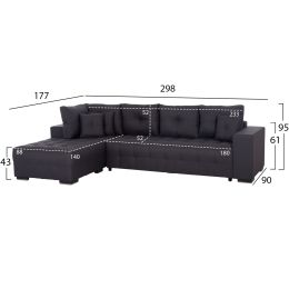 ΓΩΝΙΑΚΟΣ ΚΑΝΑΠΕΣ-ΚΡΕΒΑΤΙ ΜΕ ΑΠΟΘ.ΧΩΡΟ TRENDSTON HM3302.01L ΓΚΡΙ ΥΦΑΣΜΑ 298x177x95Υεκ